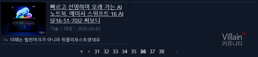 페이지네이션에서 비공개, 삭제 글들이 전체 페이지네이션에 포함되어 실제 게시글은 36페이지이지만 38페이지까지 표기가 되네요.