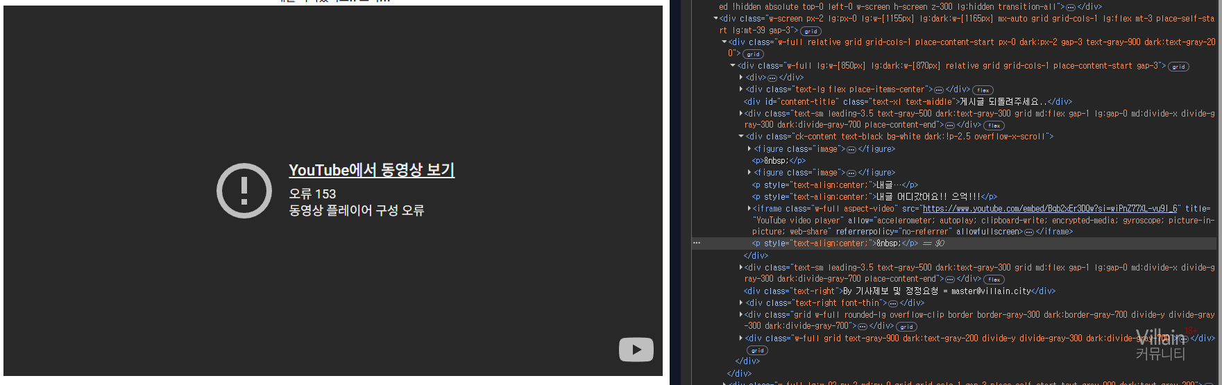 이건 뭔지 모르겠습니다만.. 유튜브 iframe 관련 글이 있더라구요..