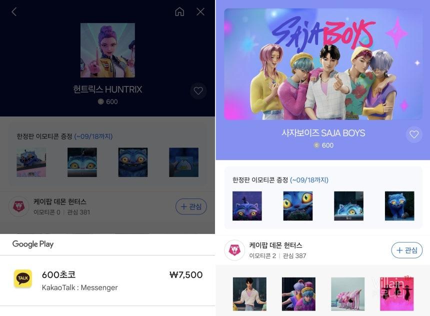 카카오, 케데헌 이모티콘 출시, 가격은 3배