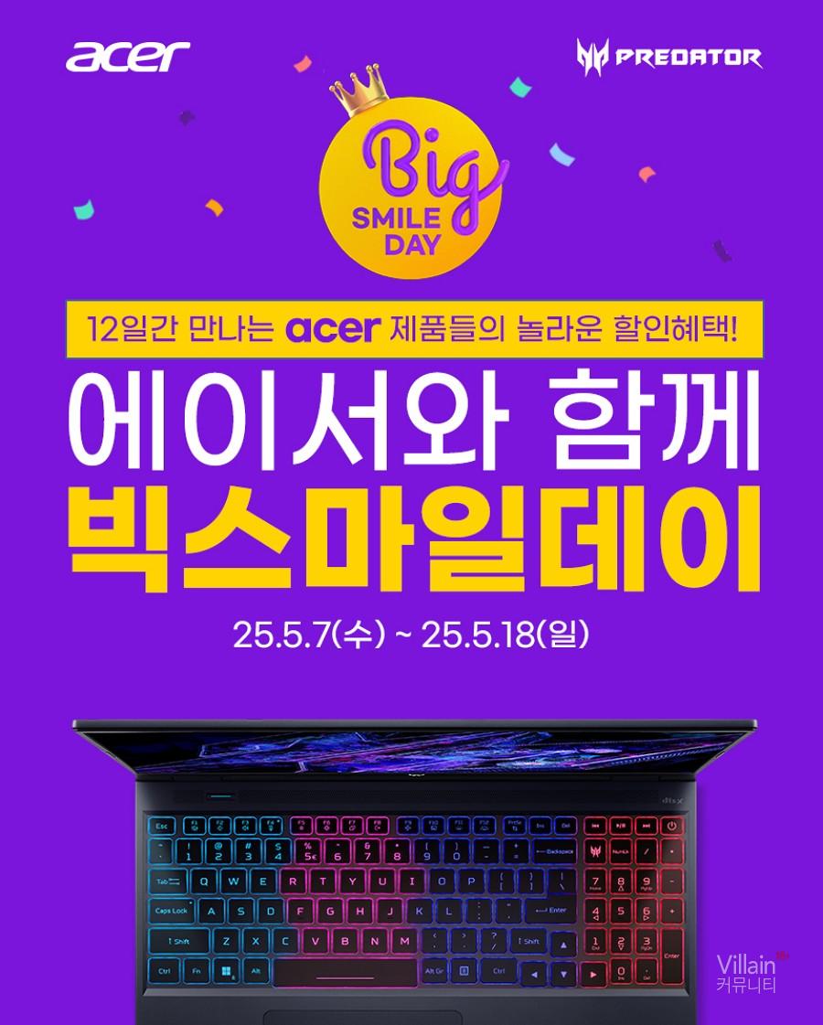 에이서가 5월 18일까지 진행되는 G마켓과 옥션의 빅스마일데이에서 인기 노트북 13종을 최대 47% 할인된 가격으로 판매한다.