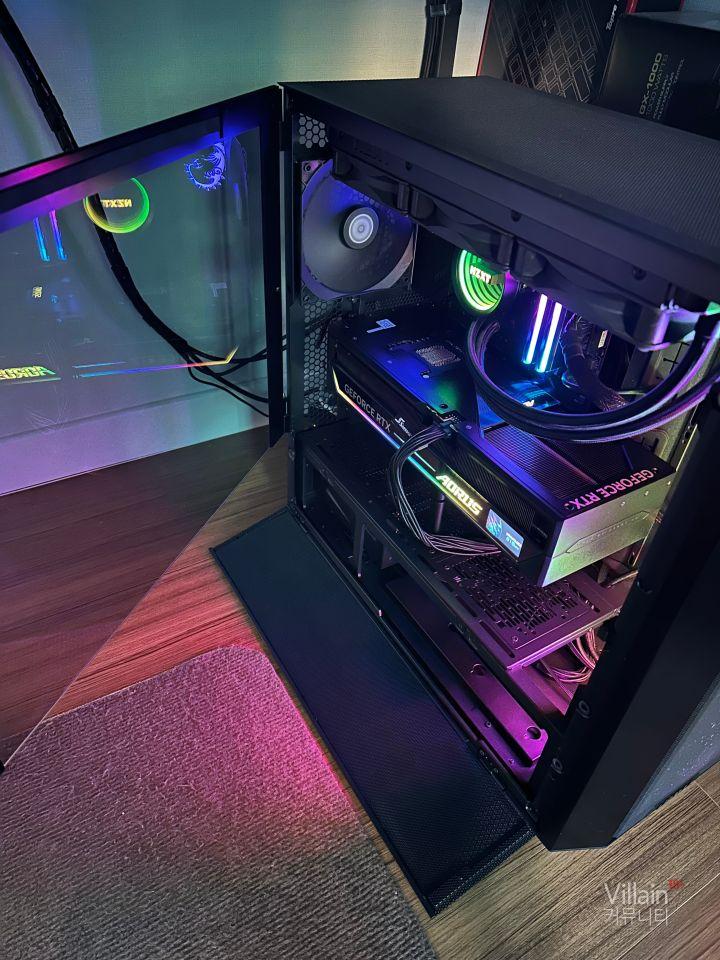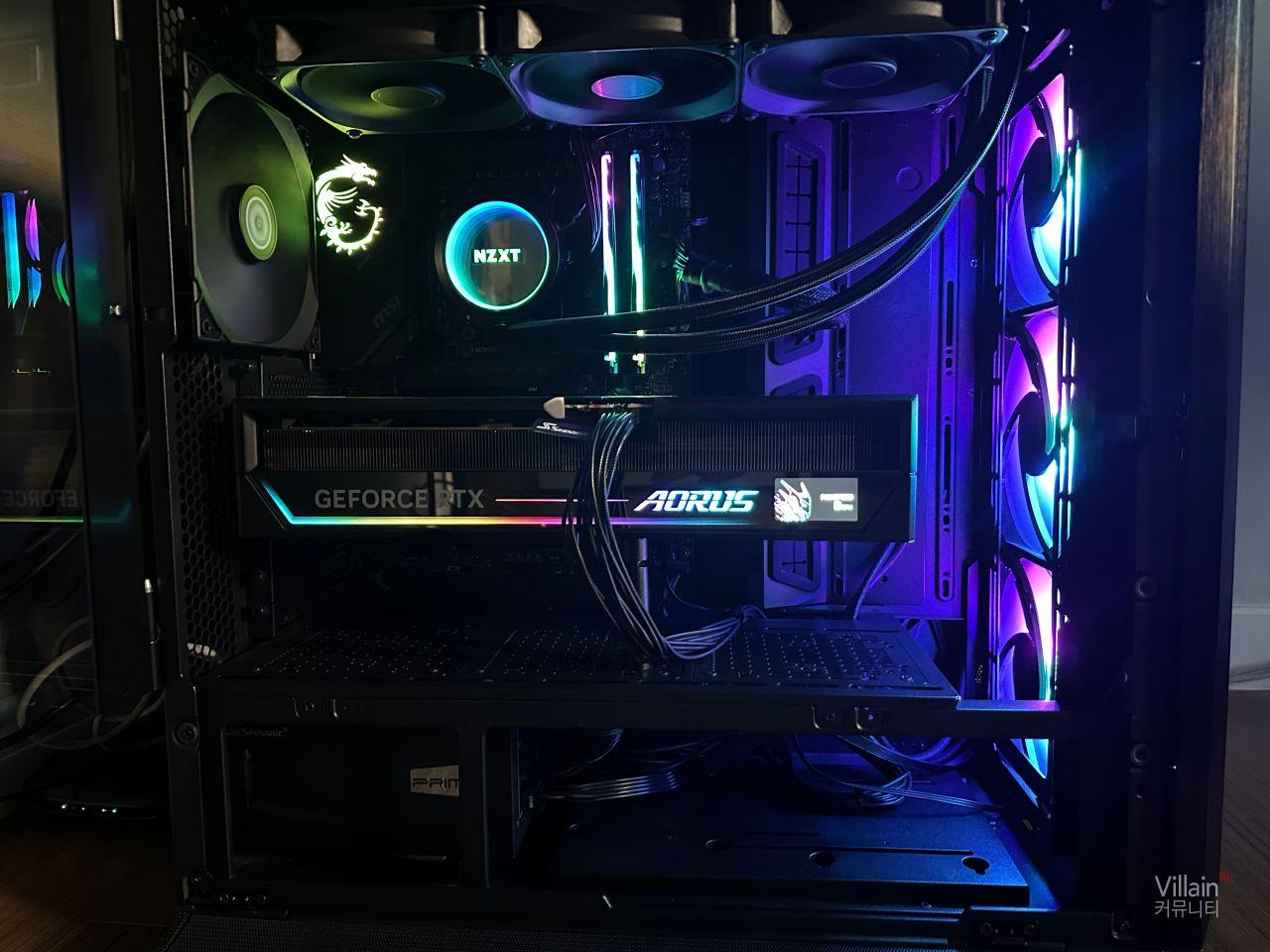 최근에 맞춘 시스템입니다. 그래픽카드가 무거워서 지지대는 필수죠.