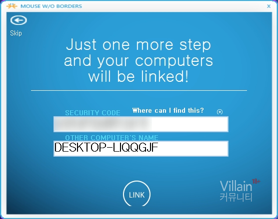 이렇게 Yes (메인PC)에서 입력 후 LINK를 클릭하면