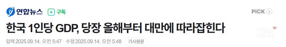 한국 GDP 대만에 따라잡힌다고 하네요.