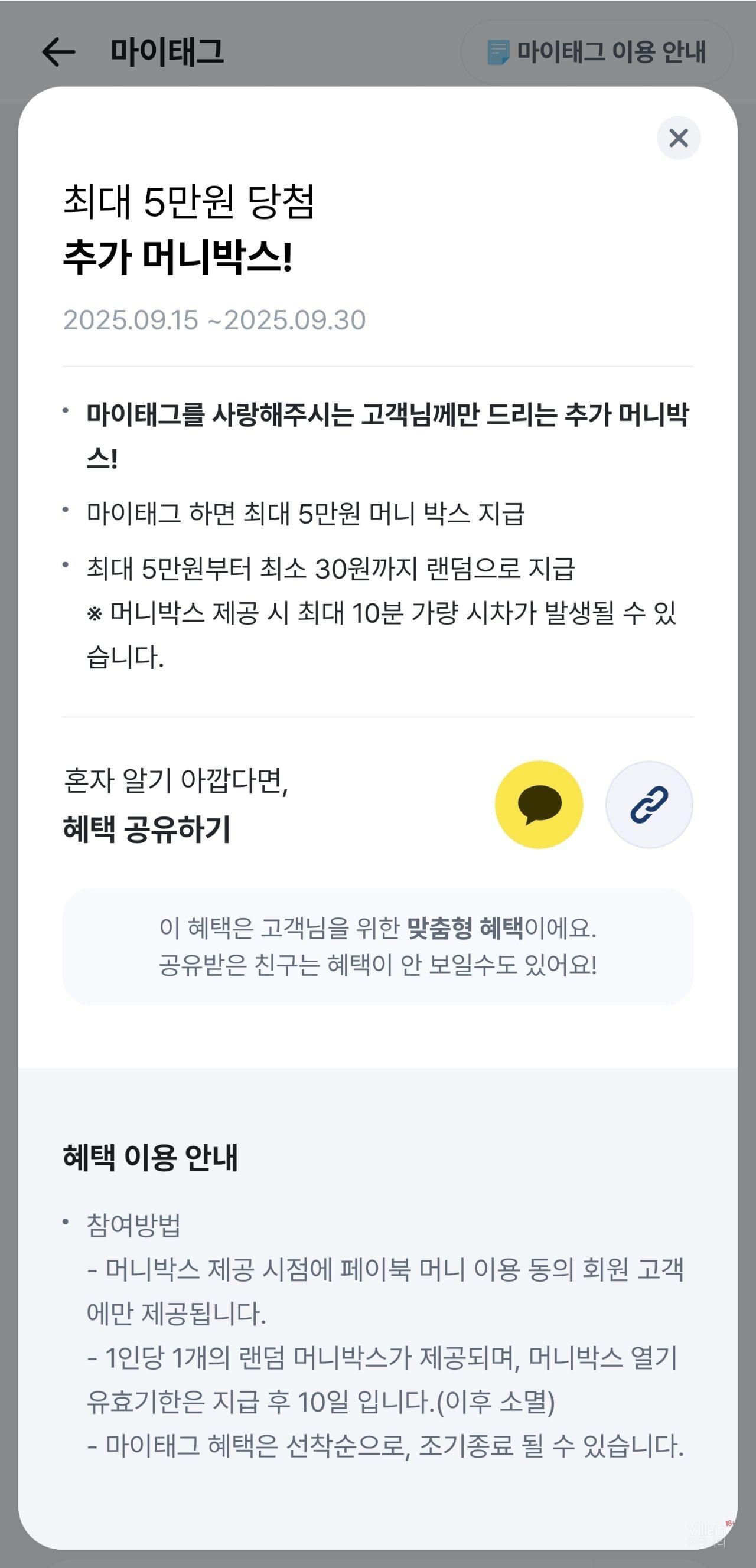 페이북에서 마이태그 랜덤포인트 받는거 3개 있네요