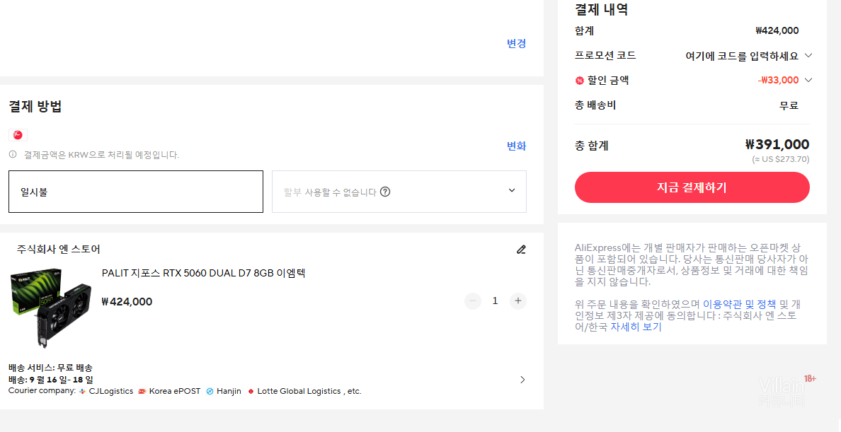 국민카드 18000원 할인까지 받으면 373000원입니다.