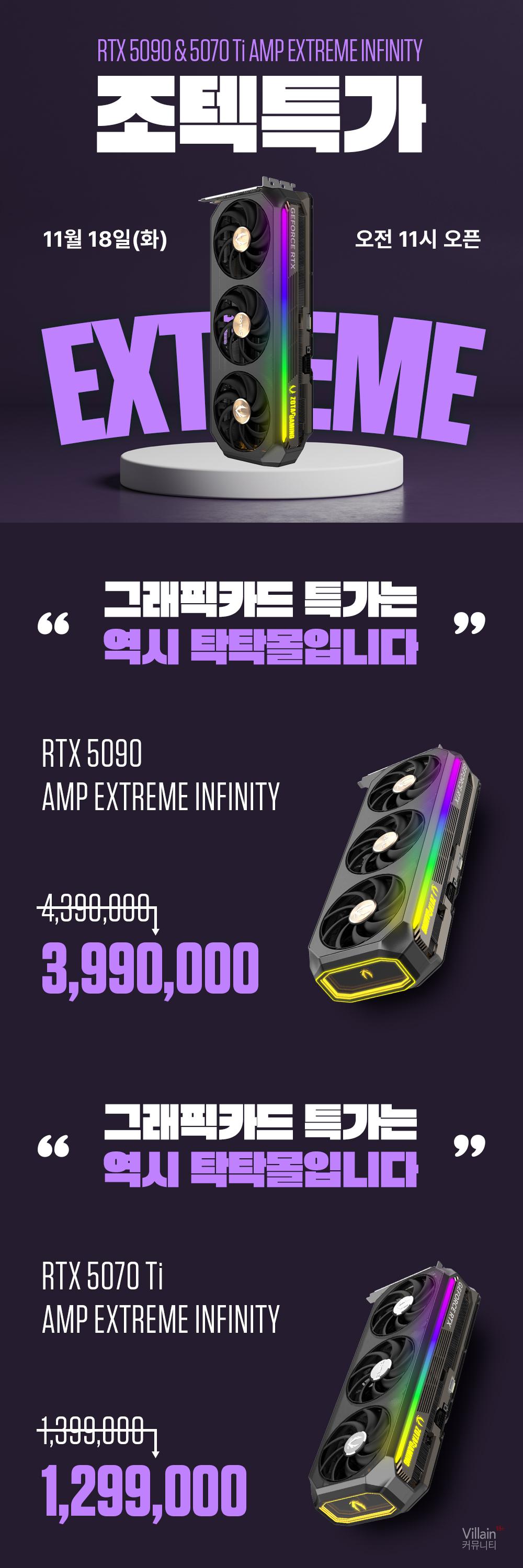 *ZOTAC GAMING GeForce RTX 5090 AMP Extreme Infinity & RTX 5070 Ti  AMP Extreme Infinity  특가 바로가기 (11월 18일 오전 11시 오픈)