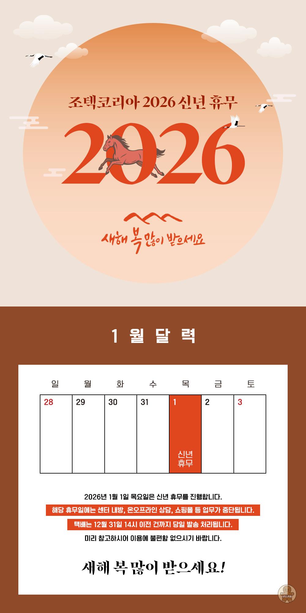2026년 1월 1일(목)은 신년 휴무로 운영을 쉬어갑니다.