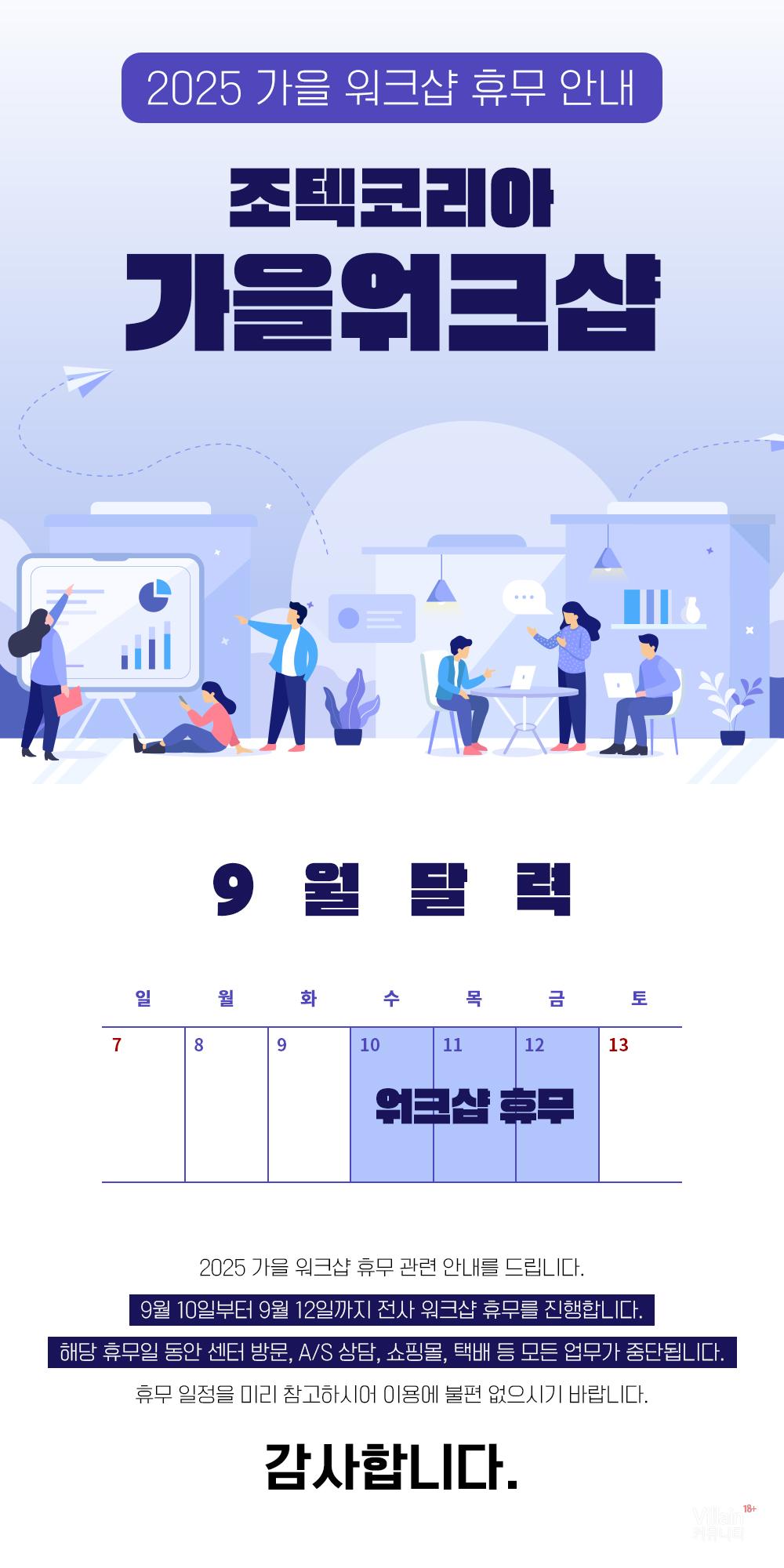 이에 워크샵 기간에는 전화 상담, CS센터, 탁탁몰, 택배 배송 등 모든 업무가 중단되니 참고 부탁 드립니다.