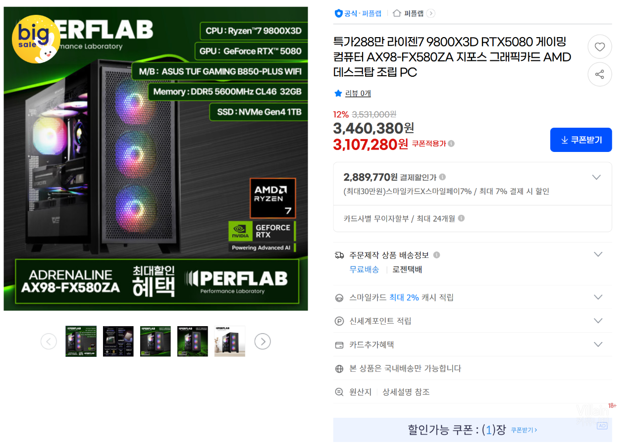 특가 288만 라이젠7 9800X3D + RTX5080 PC 🖥️ 링크