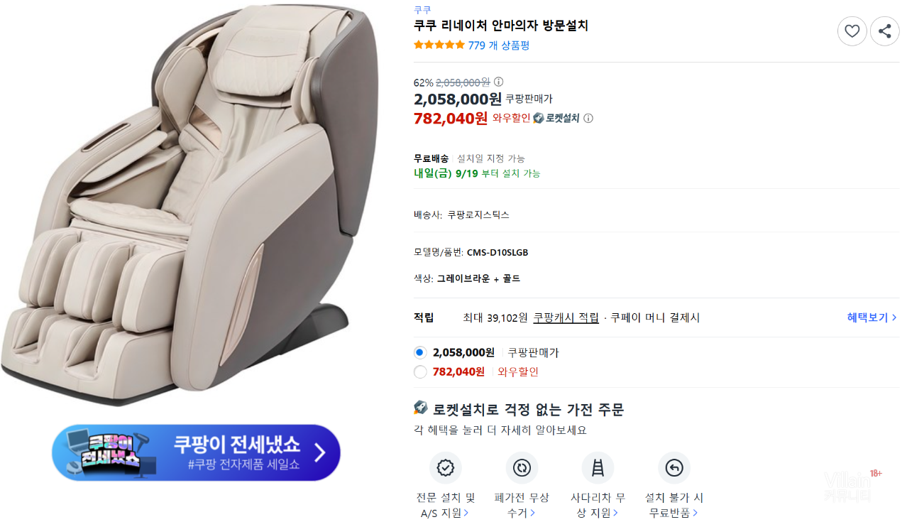 쿠쿠 리네이처 안마의자 방문설치 782,040원 (와우할인)