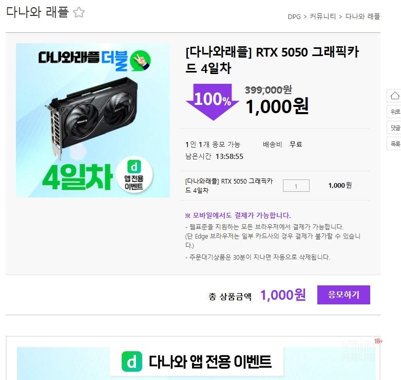 다나와 rtx5050 래플 4일차 참여들 하세요.