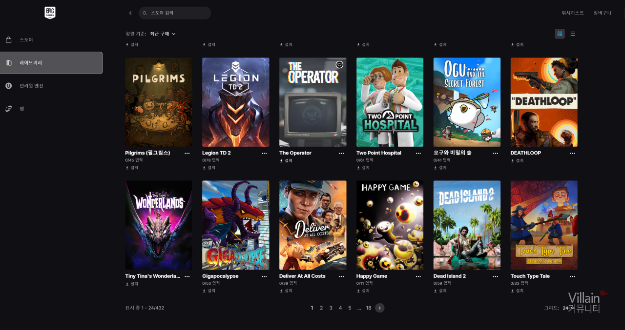 에픽 무료배포게임이 400개가 넘었네요.