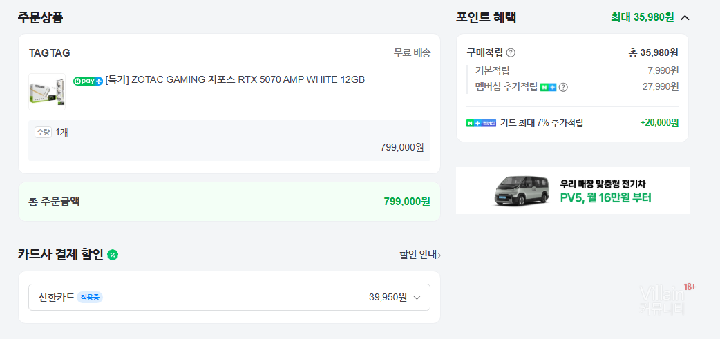 네이버라인 신한카드 있을경우 4% 추가적립되어서 30362원 추가적립 됩니다.