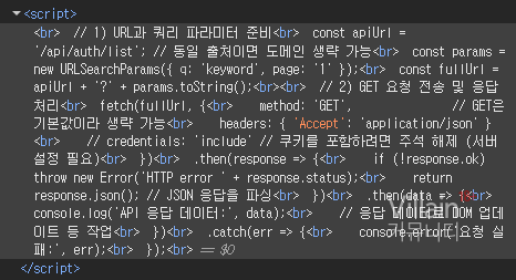 script태그는 인식되지만 내부 코드는 인식되지 않음. PASS