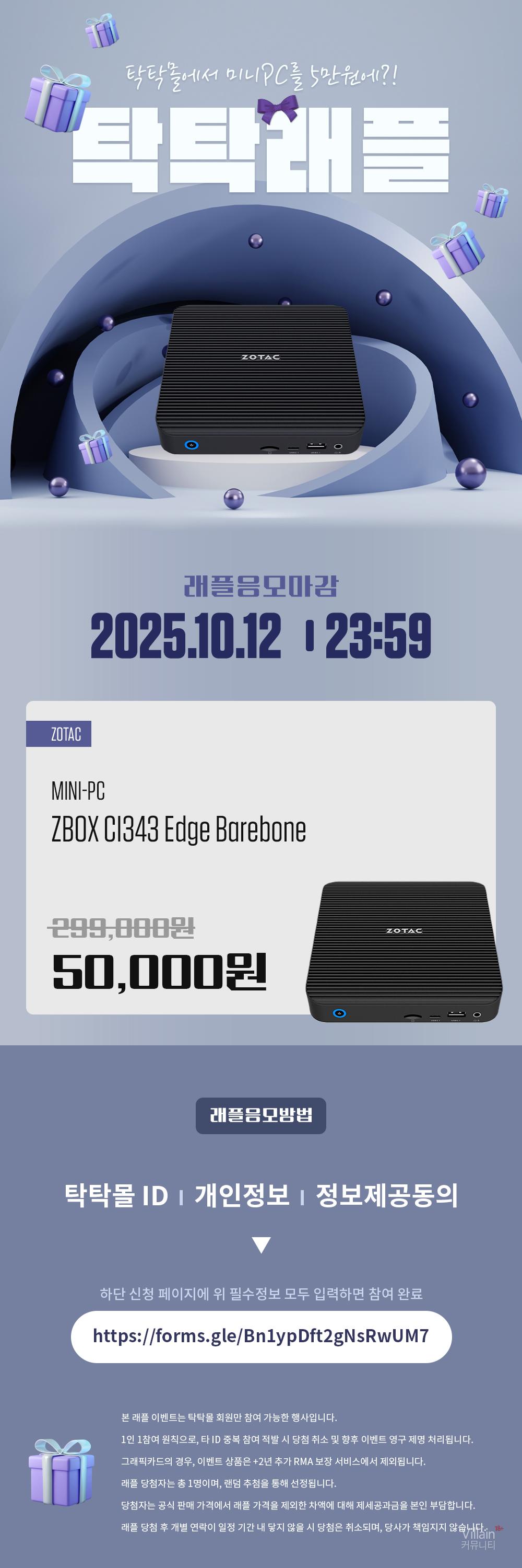 *조텍 탁탁몰 추석 맞이 래플 이벤트 : ZBOX CI343 edge 참여하기