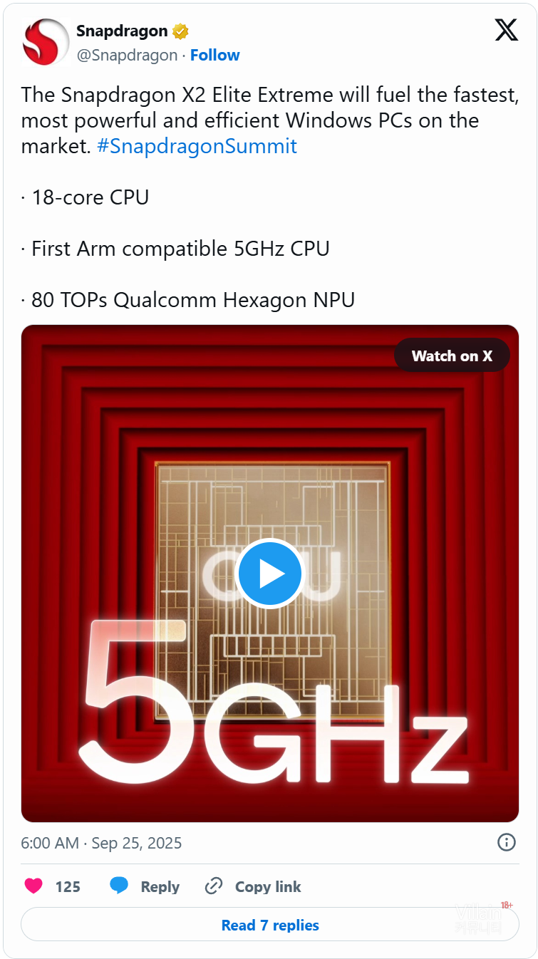 퀄컴 X2 엘리트, 최대 18코어·5GHz 클럭의 3nm 칩으로 등장