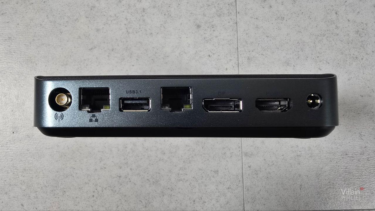 후면은 안테나, 이더넷 단자 2개, USB, DP포트와 HDMI 포트, 전원단자가 있습니다.