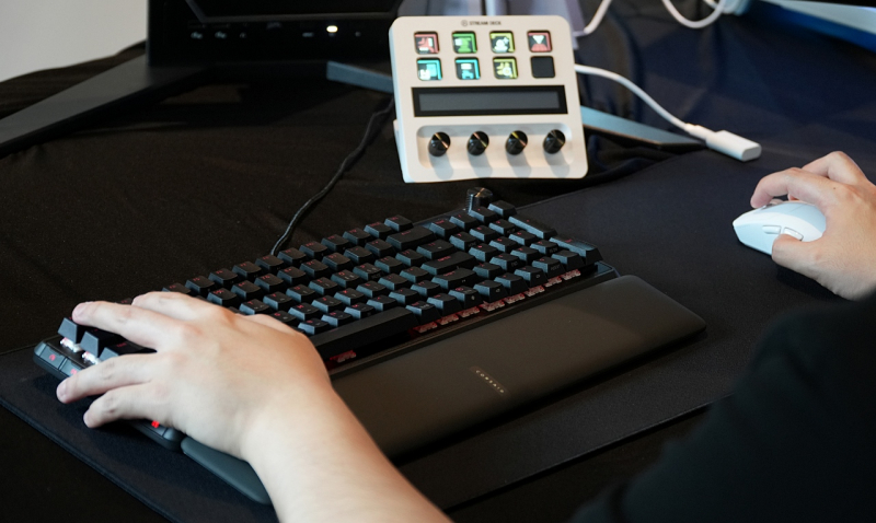 연동은 엘가토(Elgato) ‘버추얼 스트림덱’ 통합으로 확장됐다. 현장 데모에서 G키·다이얼·LCD와 오버레이가 연동돼 게임/작업/방송 프로필 전환 동선이 짧아졌고, 커스터마이징은 Web Hub에서 처리하도록 바뀌었다. 입력 사양은 8,000Hz 하이퍼 폴링, FlashTap SOCD, 핫스왑 호환을 공통으로 갖췄다. 버추얼 스트림덱 일부 기능은 분기 업데이트 예정이라는 안내가 병기됐다.