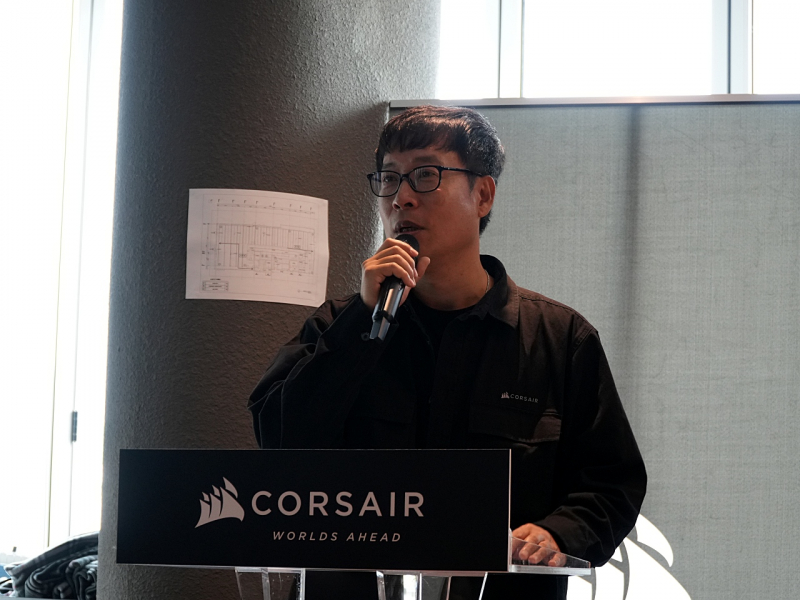 단상에 오른 박재철 커세어 코리아 지사장이 환영사를 통해 커세어가 제품 기획–출시–사후 단계 전반에서 품질 책임을 최우선 원칙으로 유지해 왔다고 짚었다. 이어 “설치형 설정 프로그램이 무겁다”는 커뮤니티 피드백을 직접 반영해, Web Hub로 주요 설정과 펌웨어 업데이트까지 처리하도록 바꿨다고 설명했다. 향후 출시 제품은 Web Hub 적용을 우선 원칙으로 삼겠다고 못 박았다.