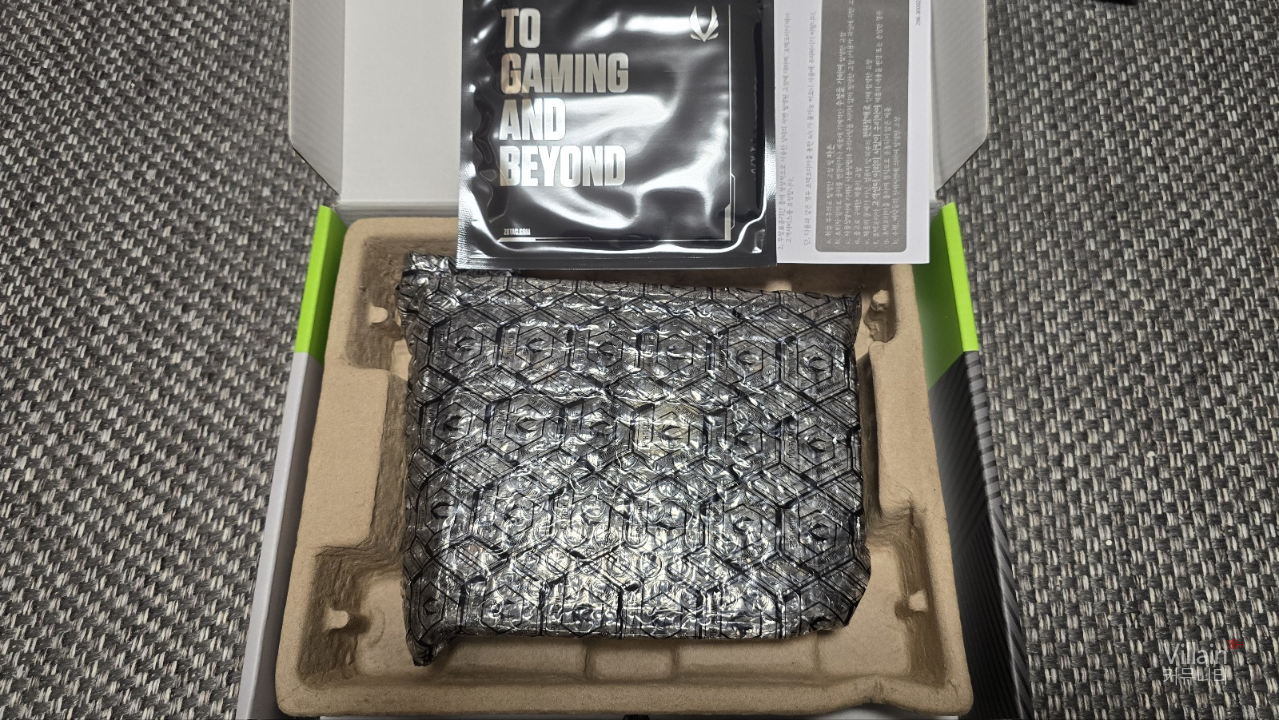 요렇게 딱! 스티로폼에 감싸진 그래픽카드를 볼 수 있습니다.