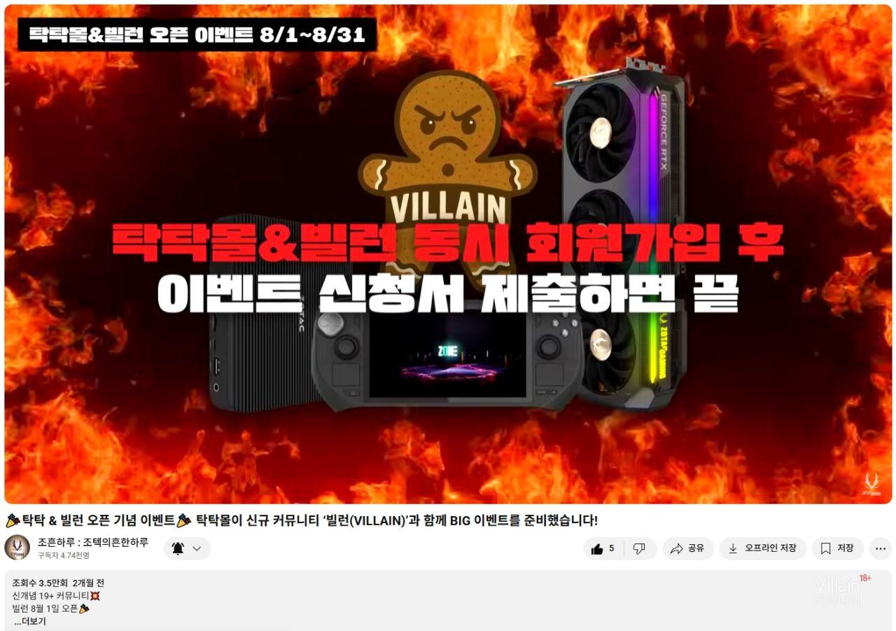 아 빌런이란 커뮤니티랑 콜라보 이벤트? 아니면 같이 커뮤니티 운영을 하는구나? 정도로 생각을 했습니다.