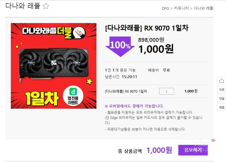 오늘부터 다나와 9070 1,000원 래플 시작 합니다.
