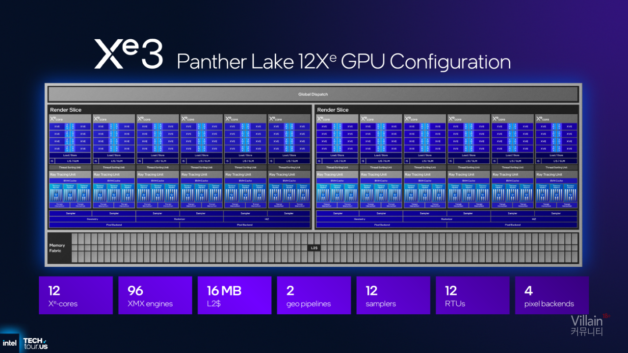 인텔의 Xe3 그래픽 아키텍처가 공식 발표되었으며, 먼저 Panther Lake의 내장 GPU(iGPU)에 적용되고 이후에는 Xe3P 변형 버전이 추가될 예정이다.