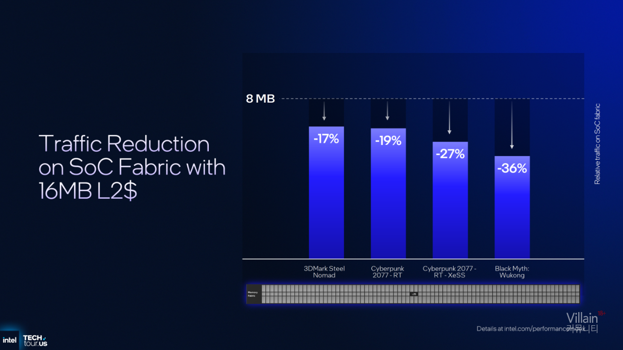 캐시 용량 증가 덕분에 SoC 패브릭 내 트래픽이 감소하며,