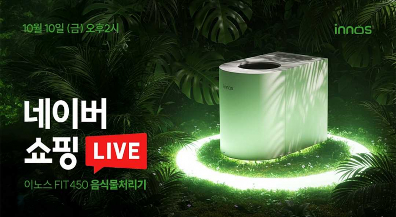 "이노스가 10월 10일 오후 2시, 네이버 쇼핑 라이브를 통해 음식물처리기 신제품 ‘FIT450’의 출시를 기념하는 첫 라이브 방송을 진행한다. 실시간 제품 기능 시연과 Q&A, 혜택 안내 등 다양한 프로그램이 준비됐다."