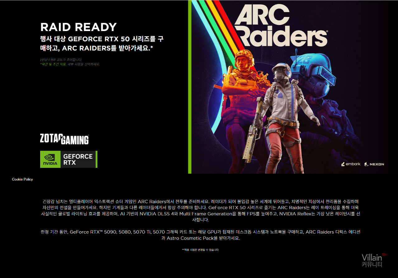 (연결링크 : https://www.zotac.com/kr/page/geforce-arc-raiders-bundle )