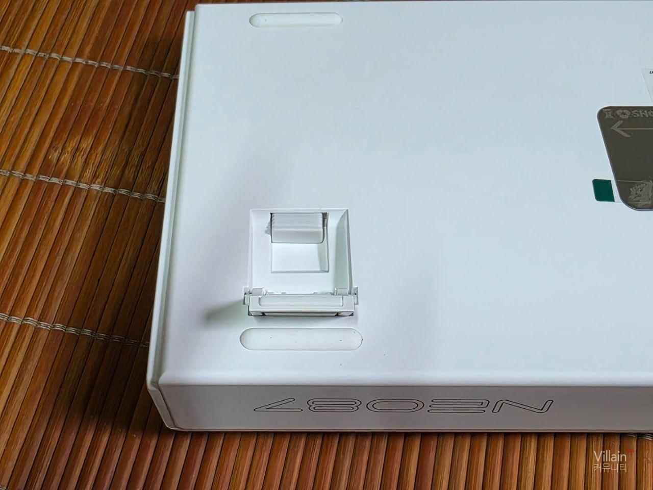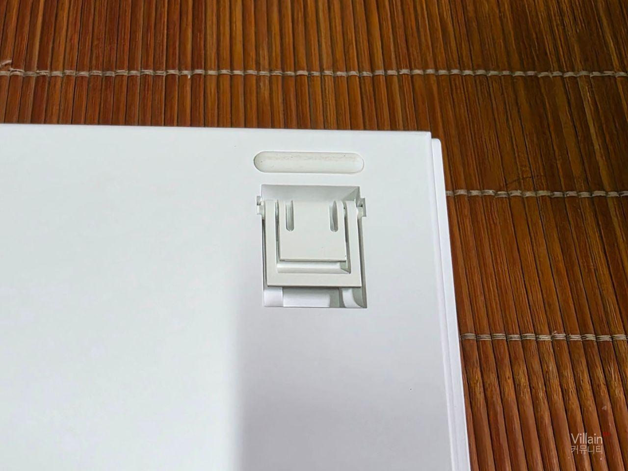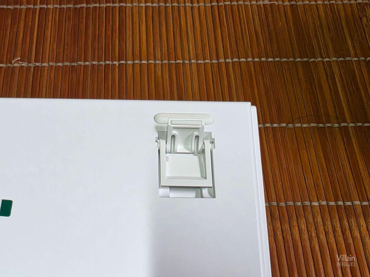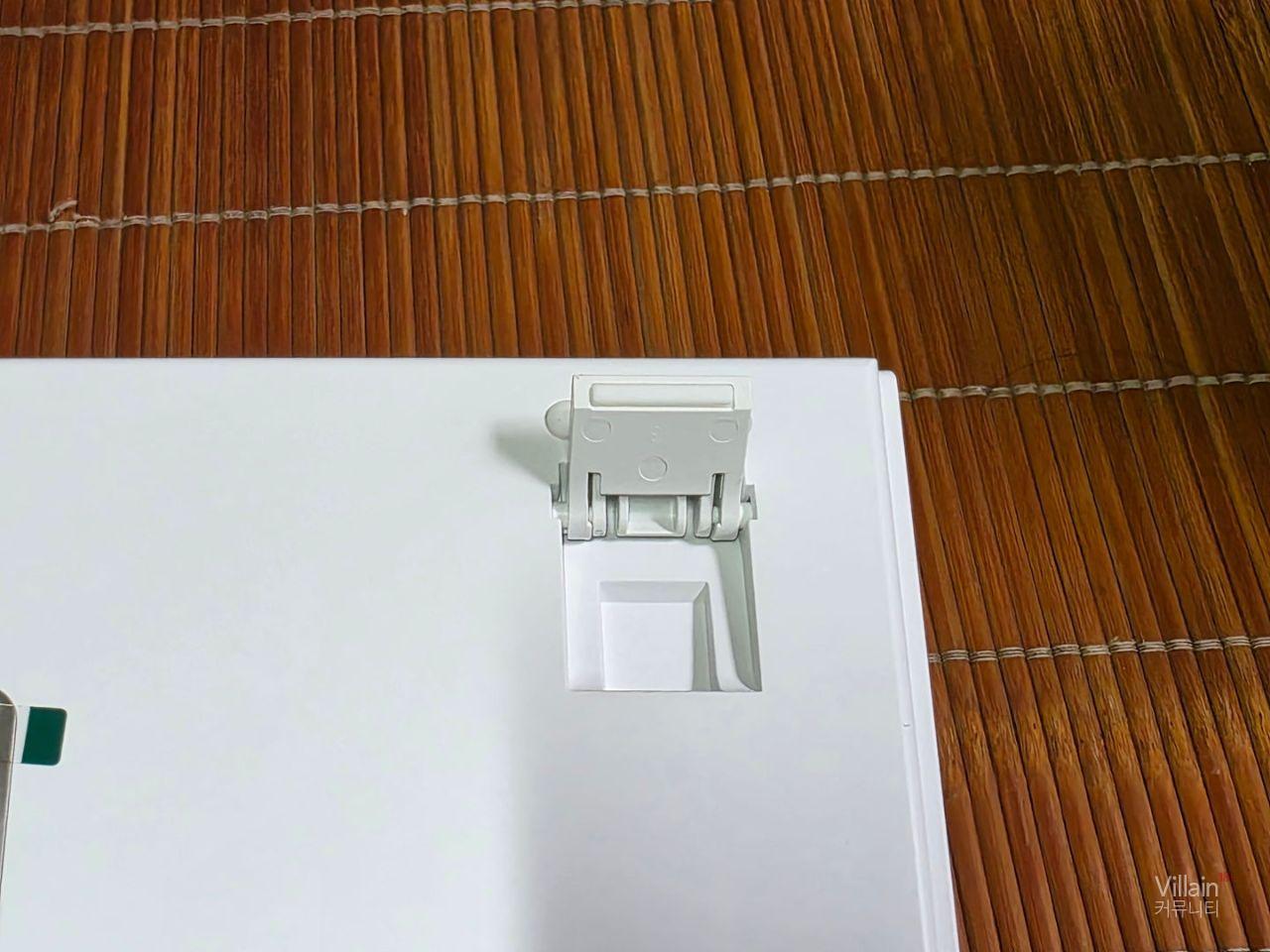 제품 다리 안쪽에 무선연결을 위한 리시버를 보관하게 되어있어 리시버 보관과 분실방지가 쉽게 되어있고 키보드 지지대는 2가지 높이로 조절이 가능해 3단계로 제품높이를 조절 할 수 있게 되어있습니다.그리고 아래쪽에는 고무받침이 있어서 제품의 흔들림을 방지하고 있습니다.