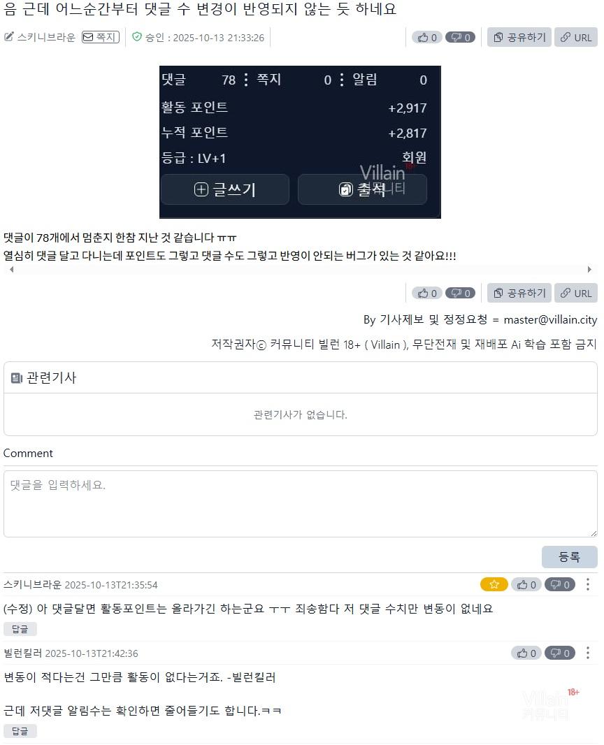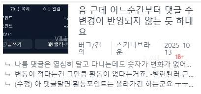 메인에서 보이는 댓글이랑 그글에서 보이는 댓글수가 다릅니다.
