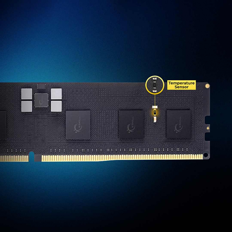 지스킬 G5는 콘텐츠 인코딩, 그래픽 렌더링, AI 추론 및 학습, 데이터베이스, 가상화 등 고부하 환경에서 안정적인 동작을 제공하도록 설계됐다. RDIMM(Registered DIMM) 구조를 채택해 모듈 내 레지스터(RCD)가 클록 및 명령 신호를 안정화하며, 대용량 메모리 구성과 다슬롯 운용에서도 높은 신뢰성을 유지한다.
