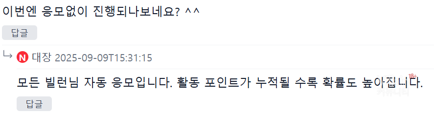 이 두개의 스샷 댓글 상황을 종합해서 보면, 참여자 입장에서는 이 이벤트가 단순 추첨이 아니라 “활동 평가 중심” 이라고 해석할