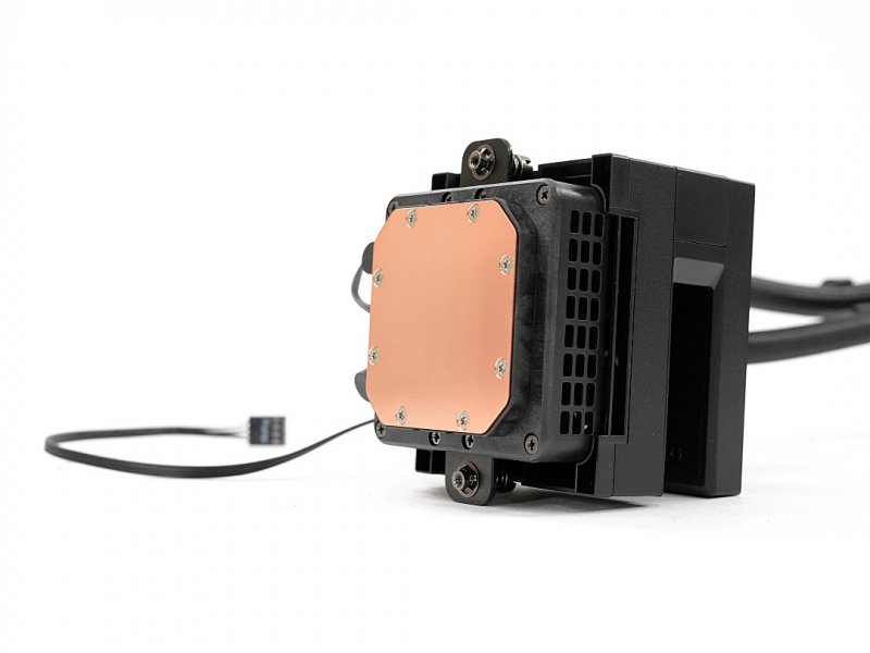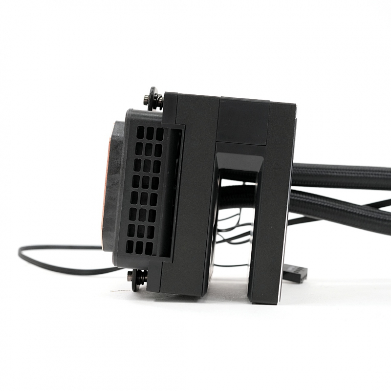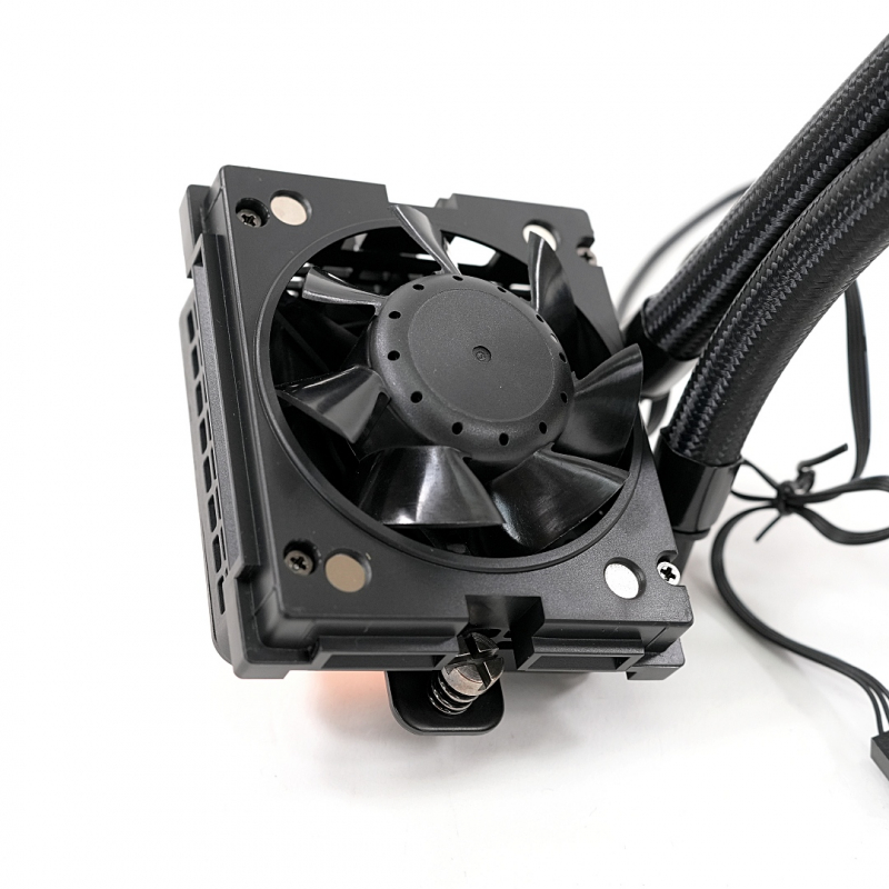 STREAM VISION 360의 또 다른 특징은 60mm 쿨링팬과 워터블록 측면의 에어홀 설계다. 전원부가 위치한 상단·좌측 방향으로 뚫린 에어홀을 통해, 60mm 팬이 만들어내는 공기 흐름이 전원부로 직접 향한다. 최대 2500RPM으로 회전하면서도 소음이 거의 없고, 효과적으로 전원부 온도를 낮춘다.
