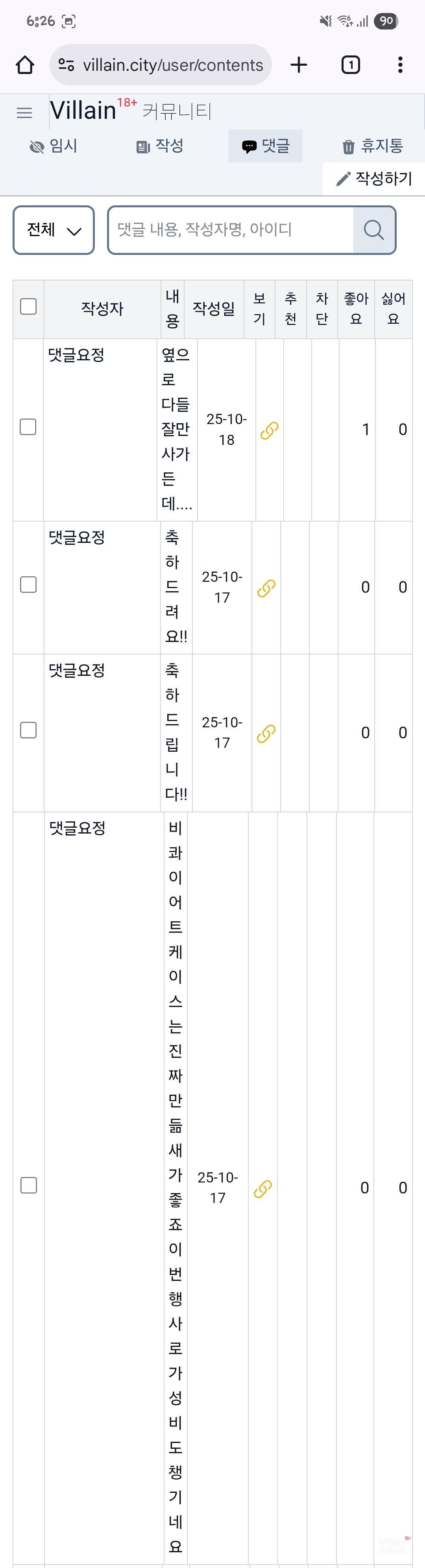 글쓰기에서 댓글탭이네요