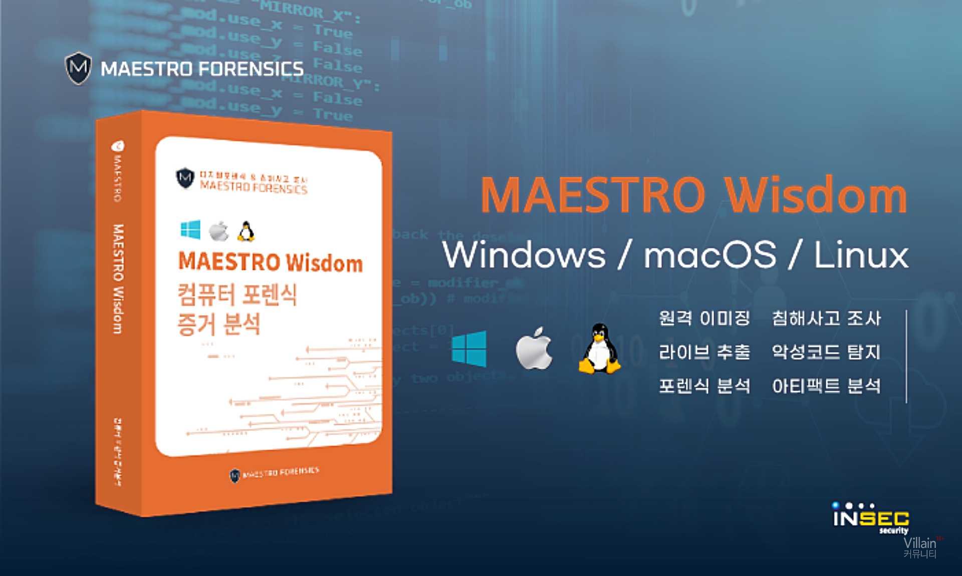 마에스트로 위즈덤은 디스크 이미징, 실시간 메모리 덤프, 실행 중인 프로세스 분석, 로그 수집 및 악성코드 탐지 등을 자동화 방식으로 처리해 분석 효율을 높인다. 수사기관에서는 분석 난도가 높은 macOS를 포함한 다양한 운영체제 환경에서 마에스트로 위즈덤을 활용해 포렌식 대응력을 강화하고 있다. 현장 대응과 원격 분석 모두 가능해 사이버 범죄 수사에 실질적인 도구로 쓰인다.
