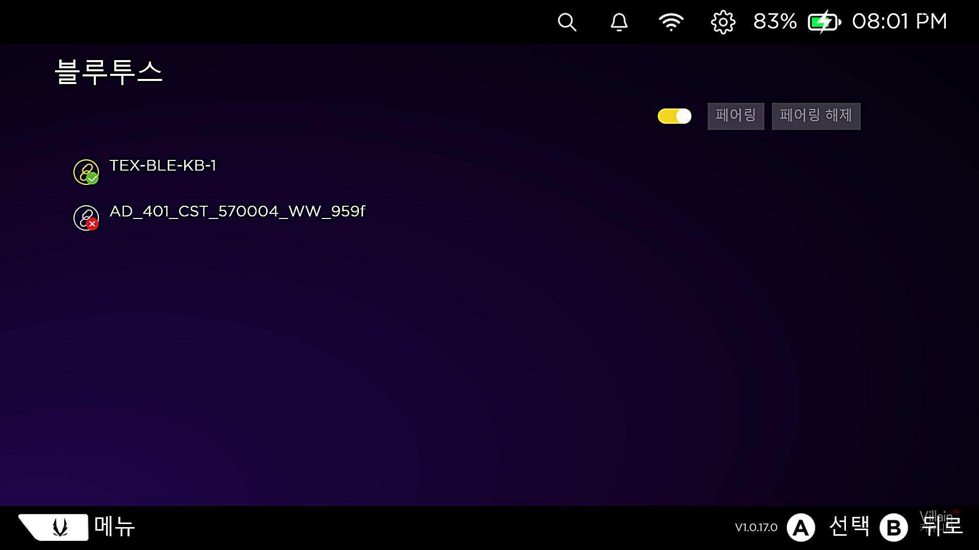 블루투스 연결은 컨트롤러, 키보드, 마우스는 물론