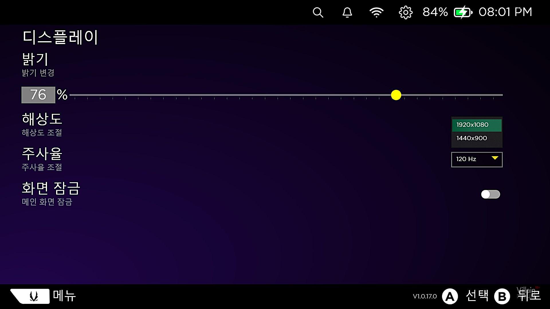 디스플레이: 7인치 1080p 120Hz AMOLED