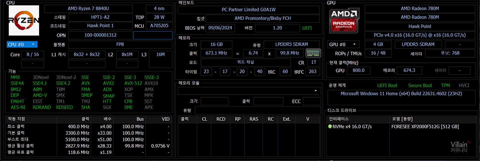 CPU는 AMD Ryzen 7 8840U.