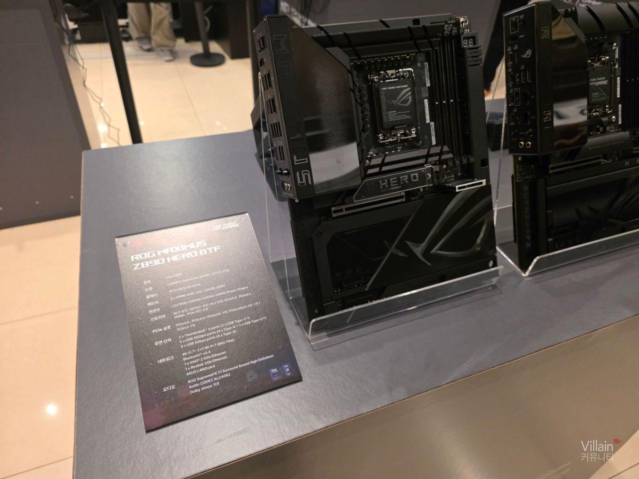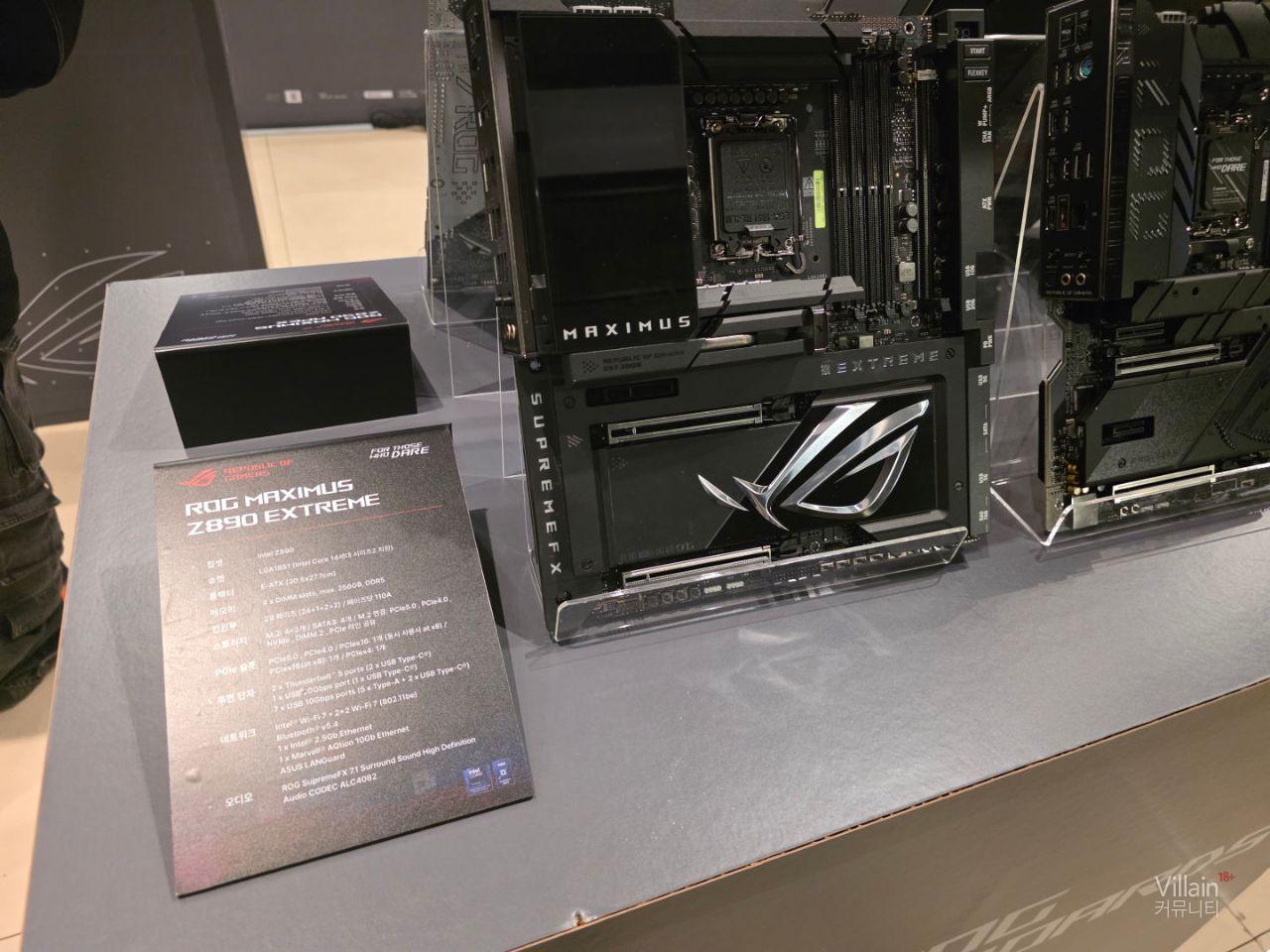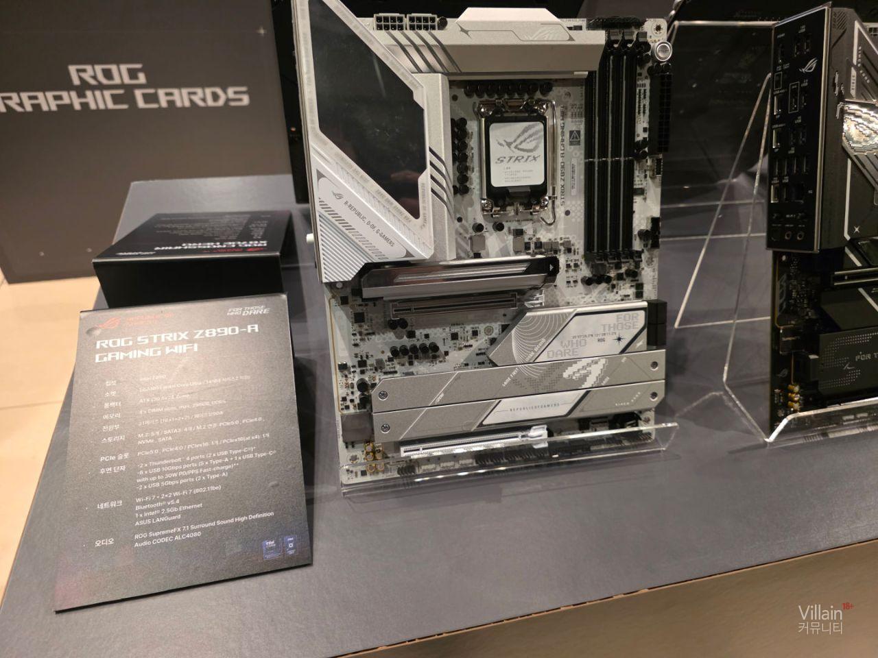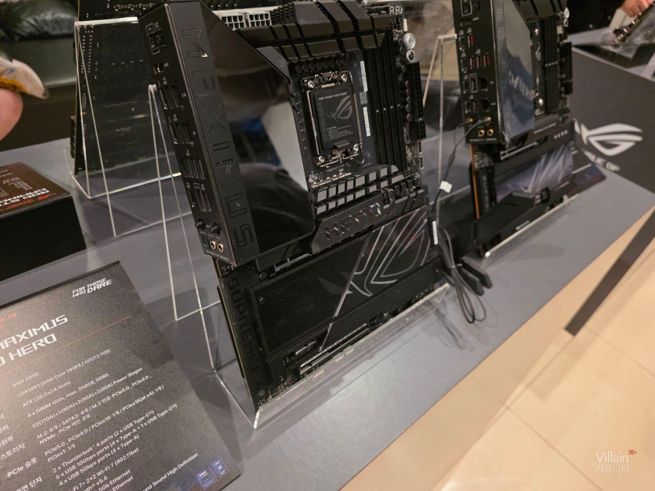 ASUS의 메인보드들이 전시되어 있습니다. 큰거부터 작은거까지 다양한 제품들이 전시되어 있지만 공통적으로 좋은성능의 제품들이 전시되어 있습니다.