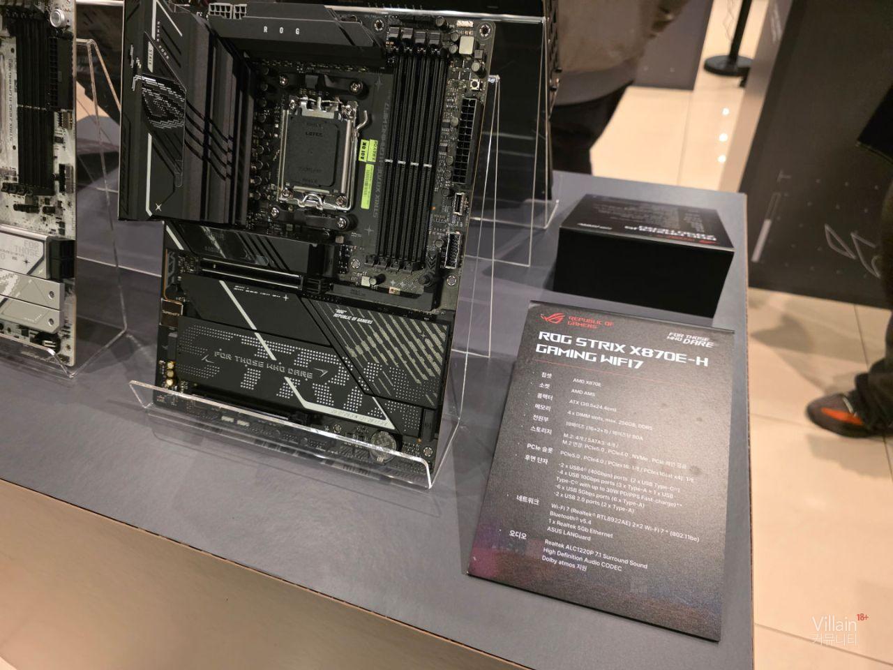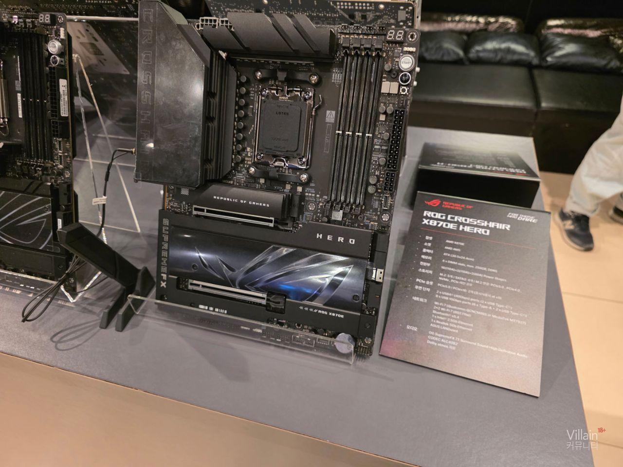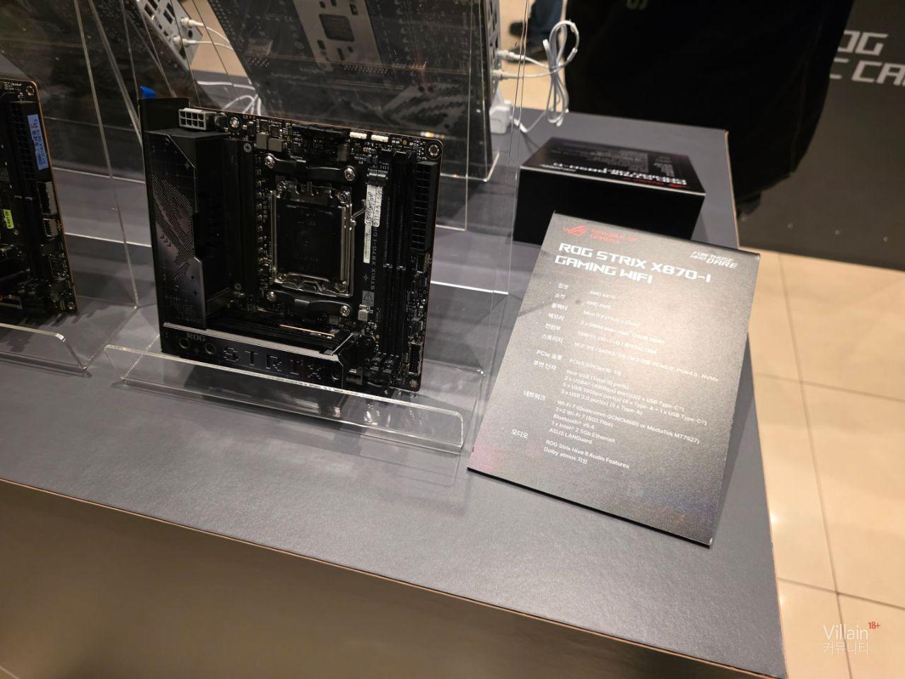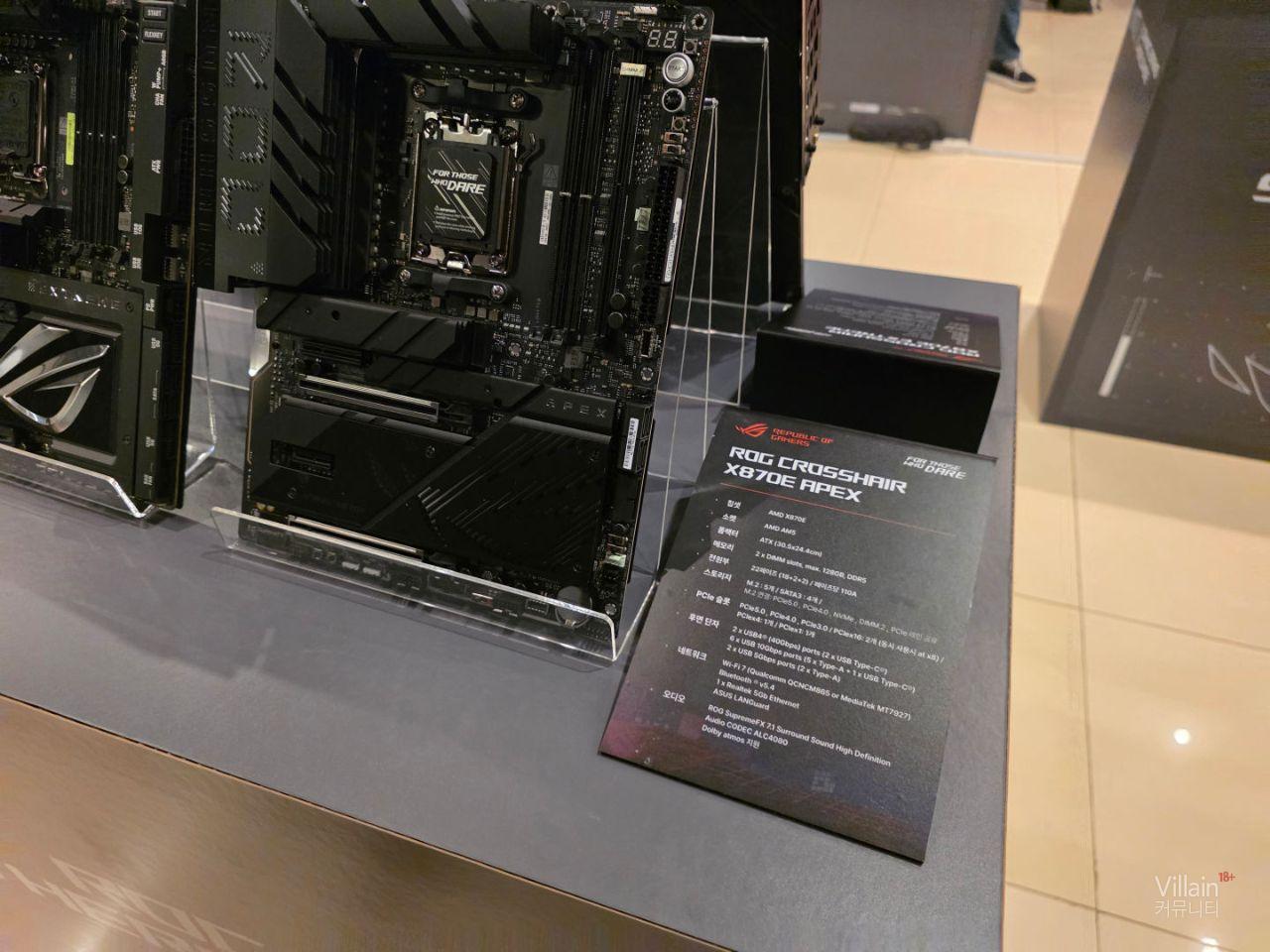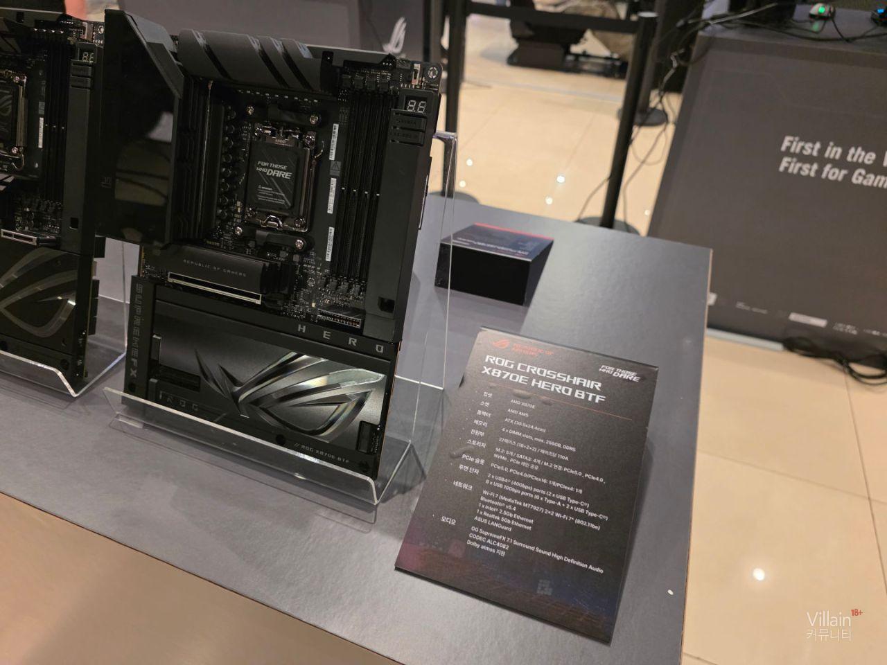 ASUS의 메인보드들이 전시되어 있습니다. 큰거부터 작은거까지 다양한 제품들이 전시되어 있지만 공통적으로 좋은성능의 제품들이 전시되어 있습니다.