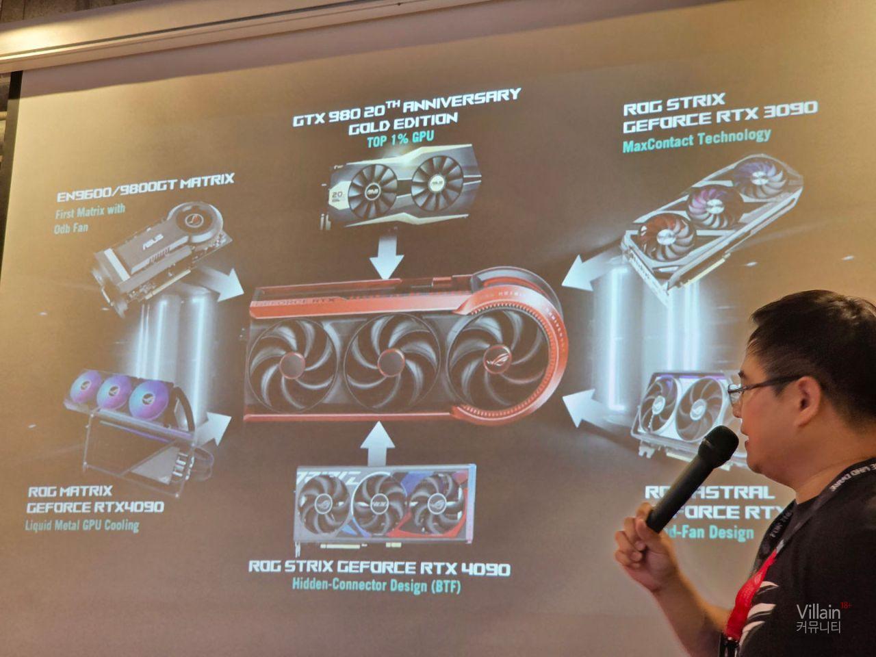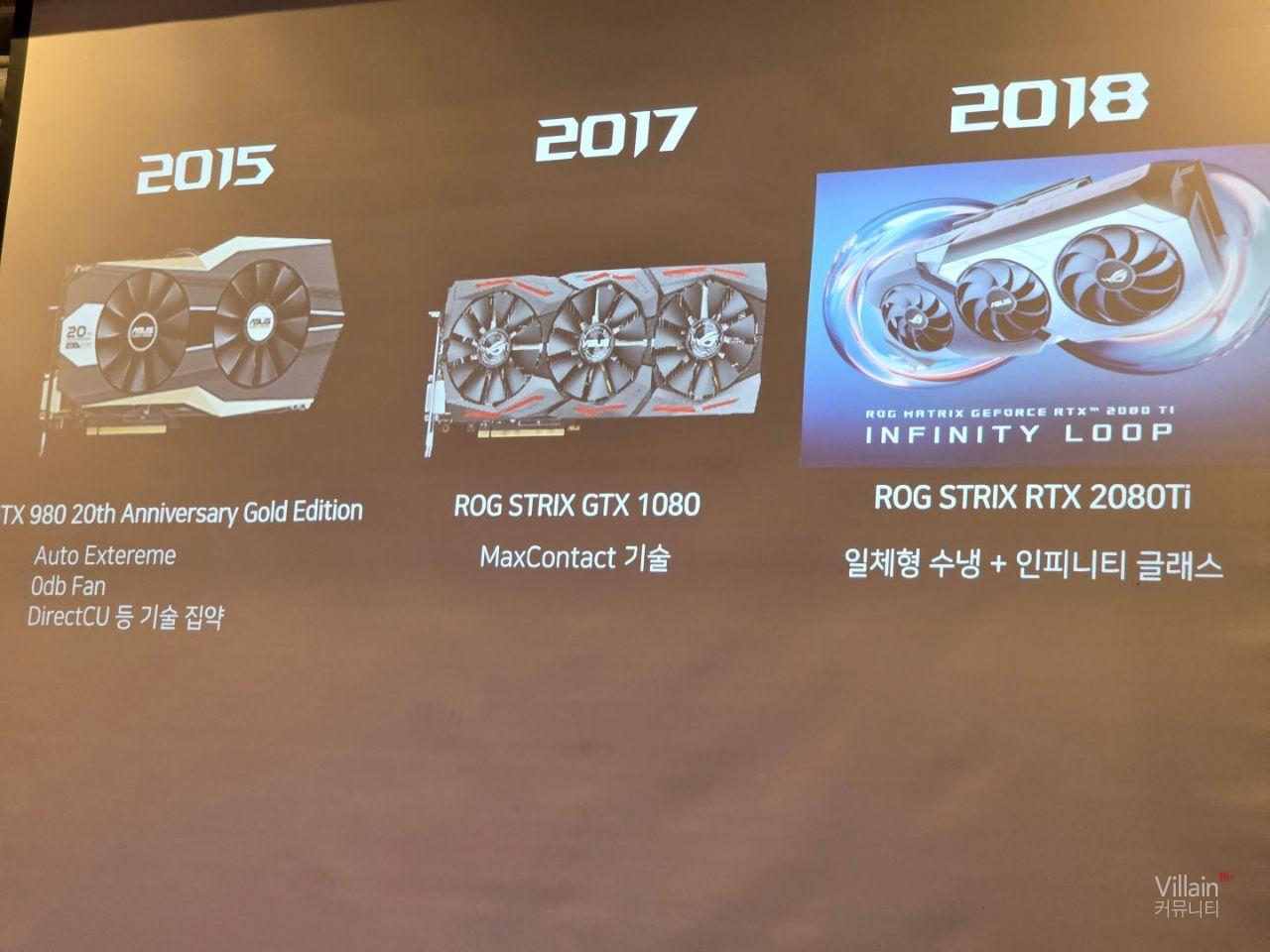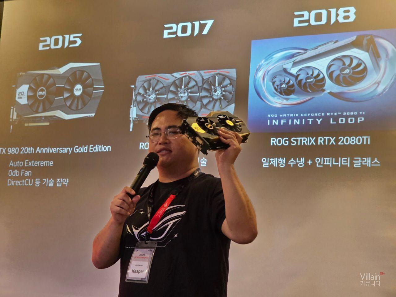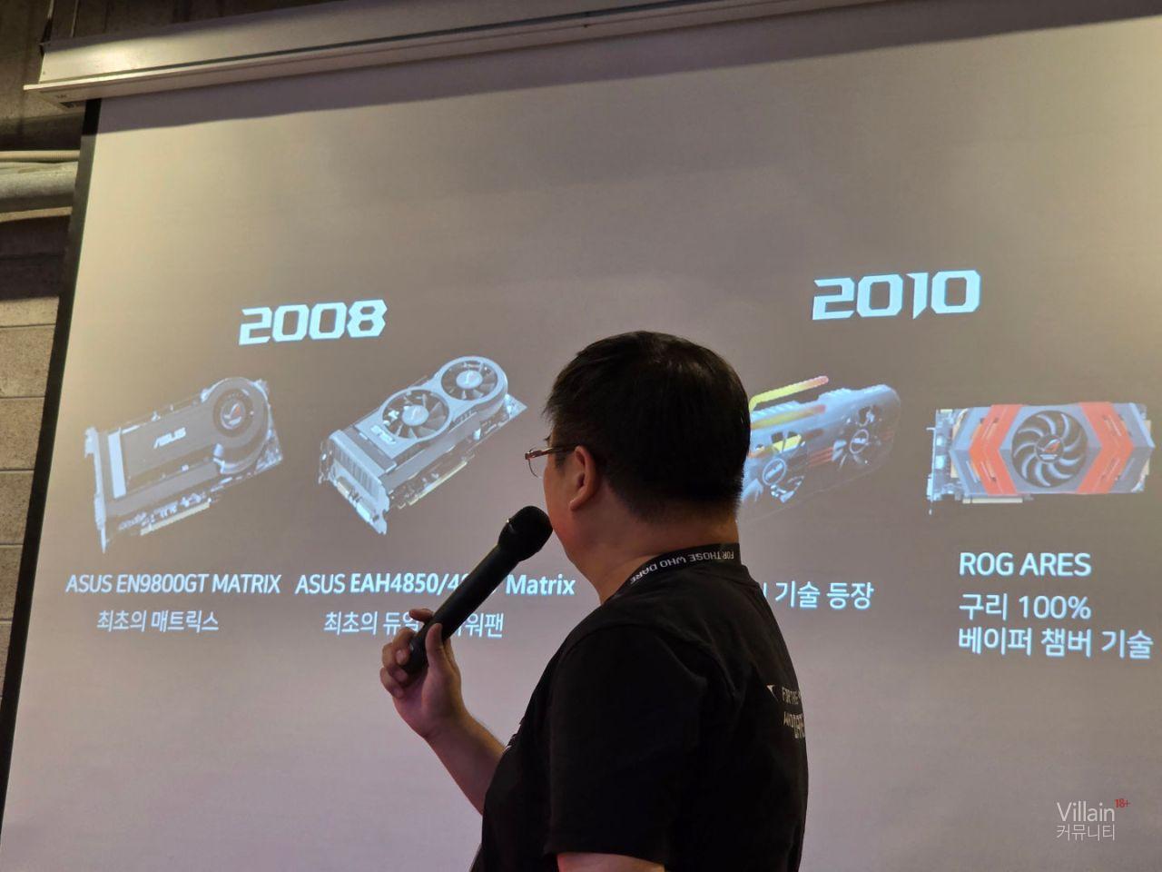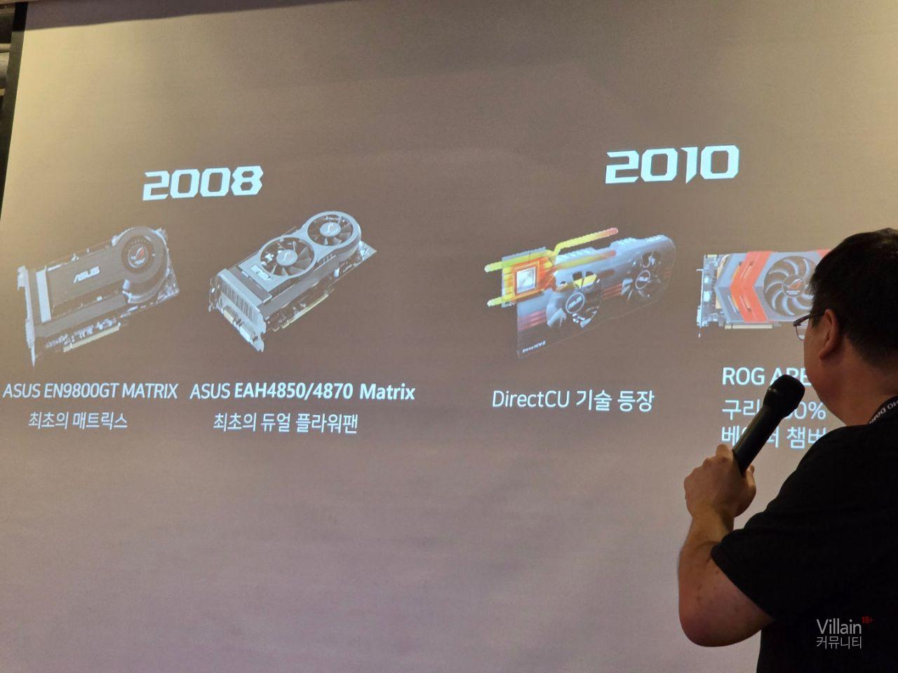 지금까지 나온 ASUS그래픽카드의 역사와 특징들에 대해 설명하고 있습니다. 현장에서는 ASUS 20주년 기념제품을 실물로 보여주
