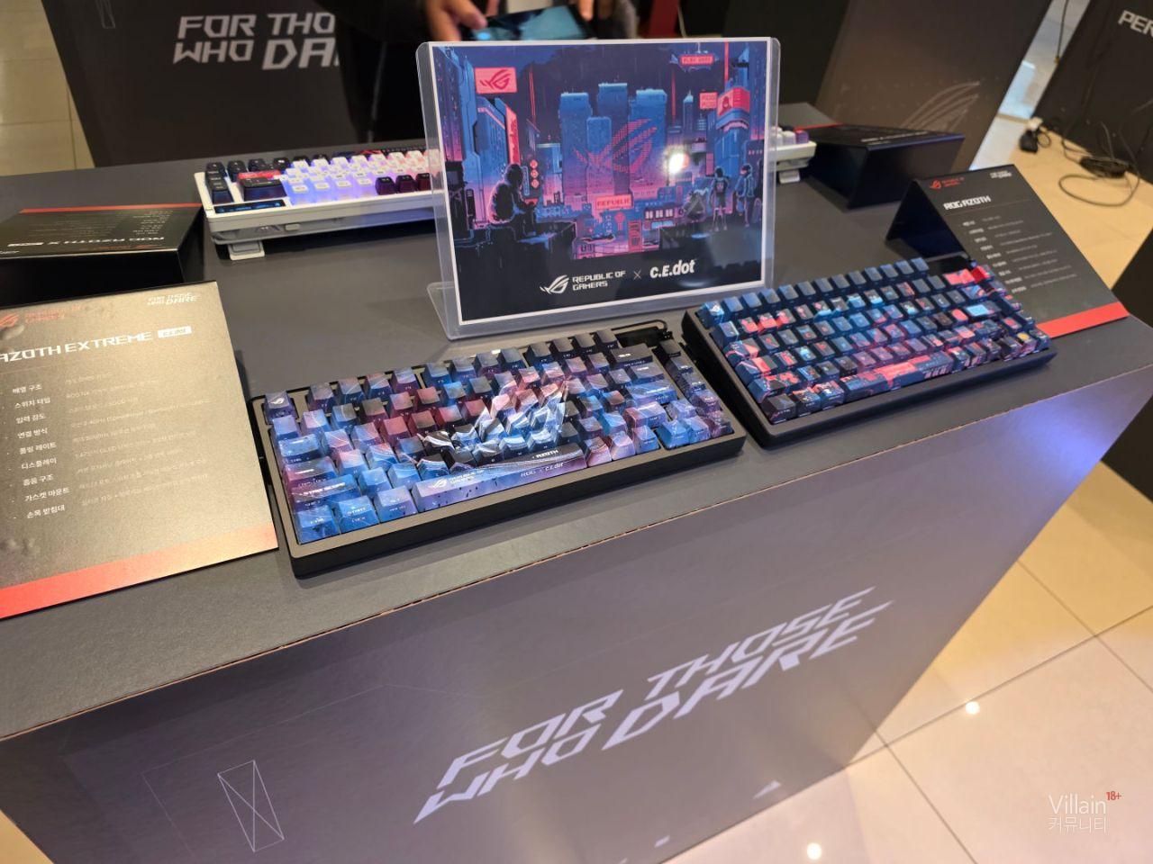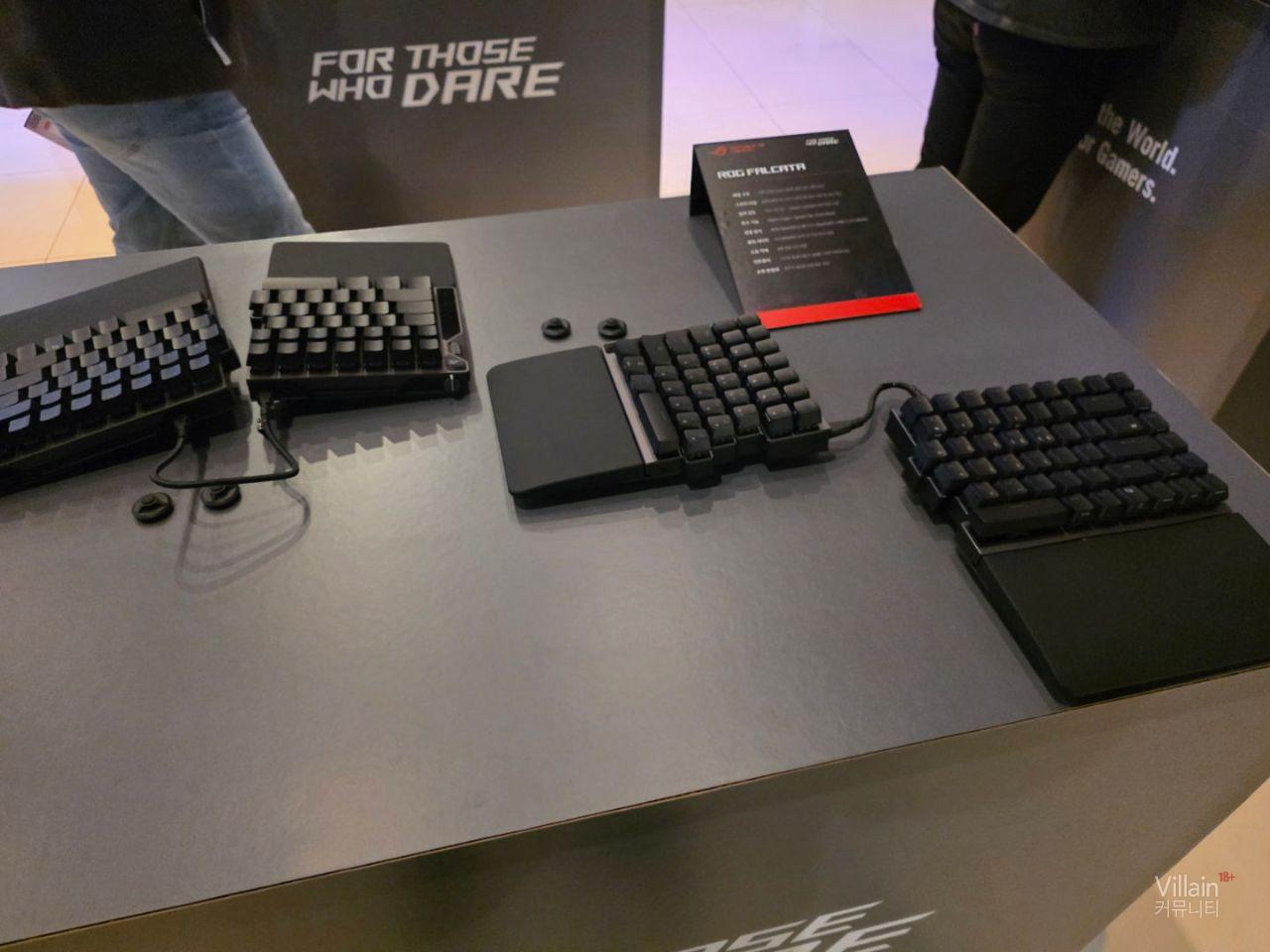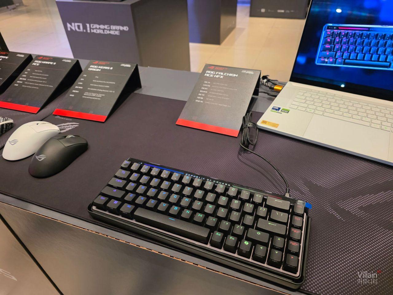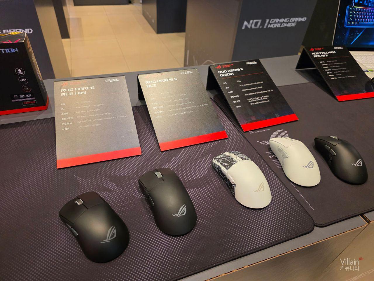 ASUS에서 판매하는 다양한 키보드와 마우스가 전시되어 있습니다. 전부가 게이밍에 특화된 성능을 가진 고사양의 제품들이었습니다.