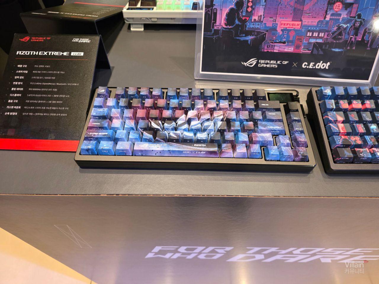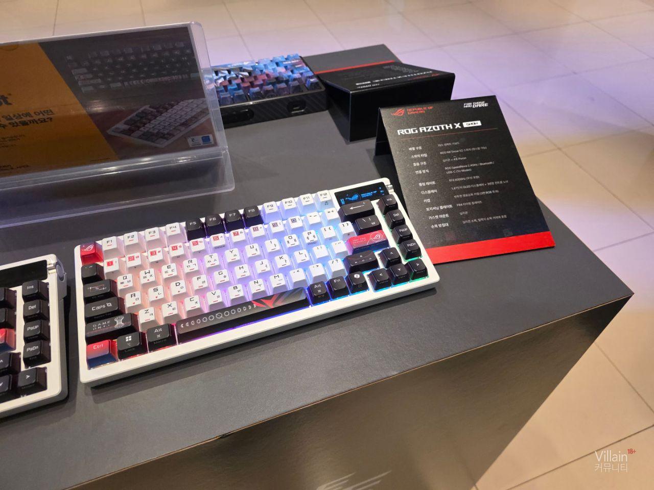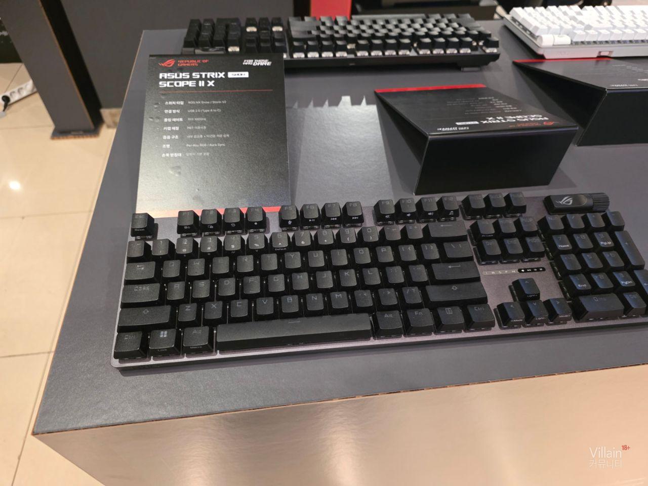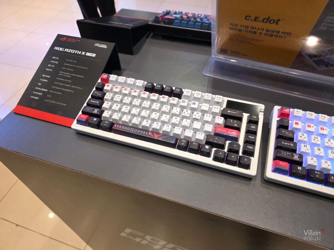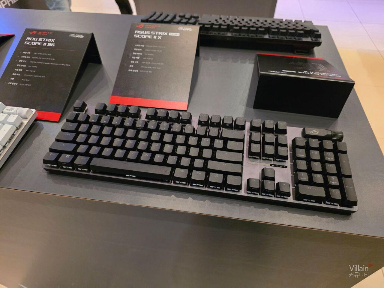 ASUS에서 판매하는 다양한 키보드와 마우스가 전시되어 있습니다. 전부가 게이밍에 특화된 성능을 가진 고사양의 제품들이었습니다.