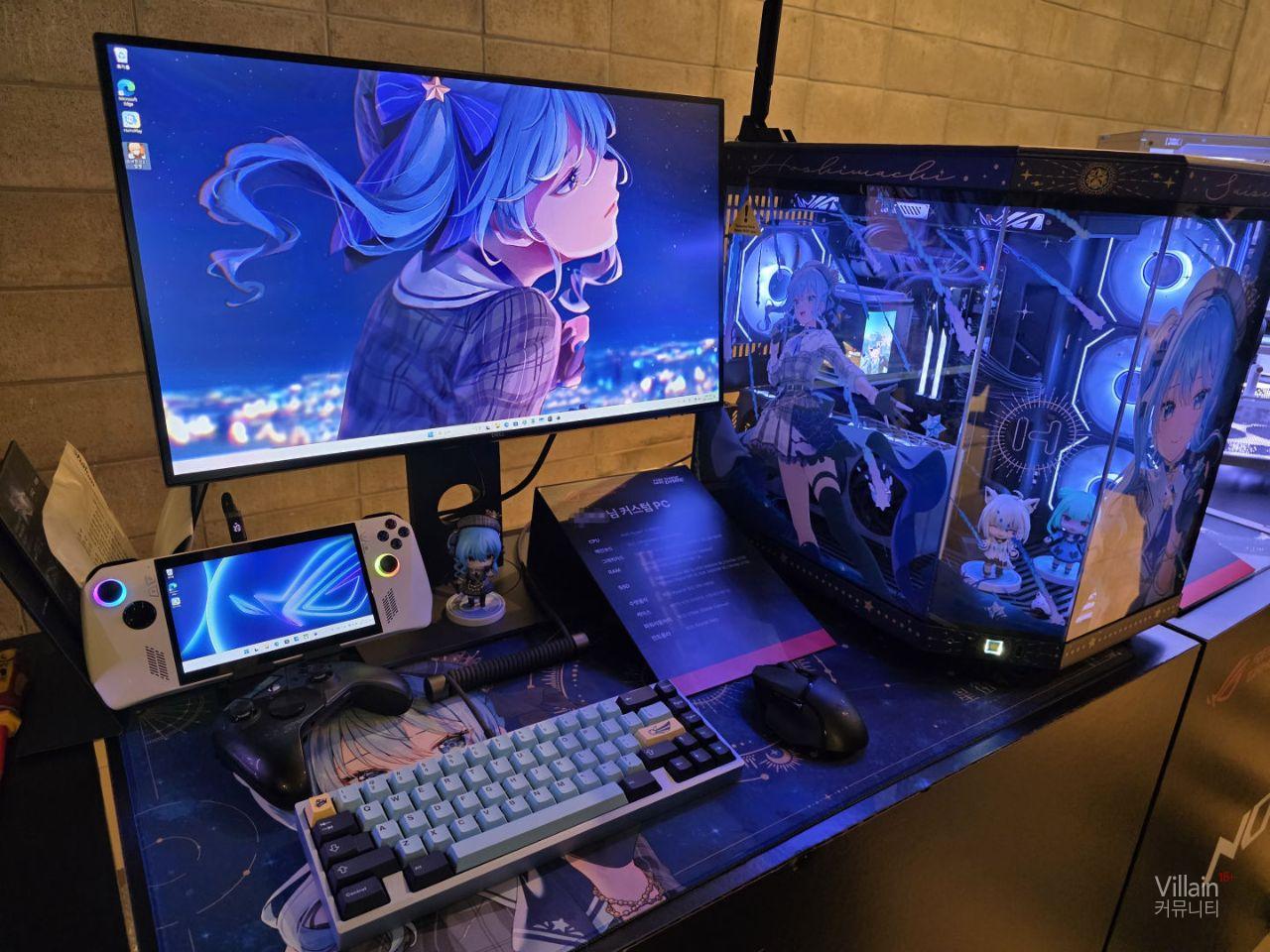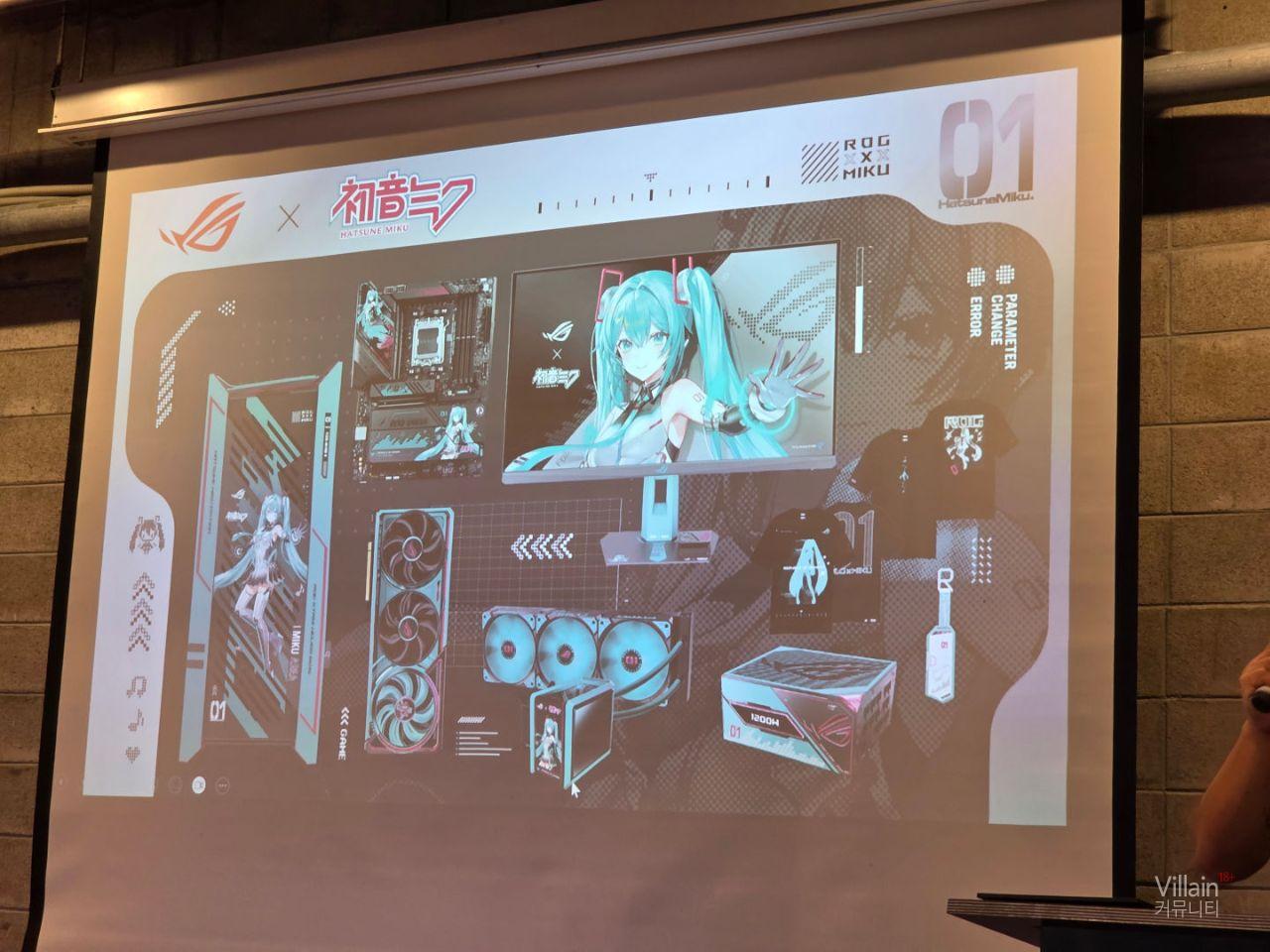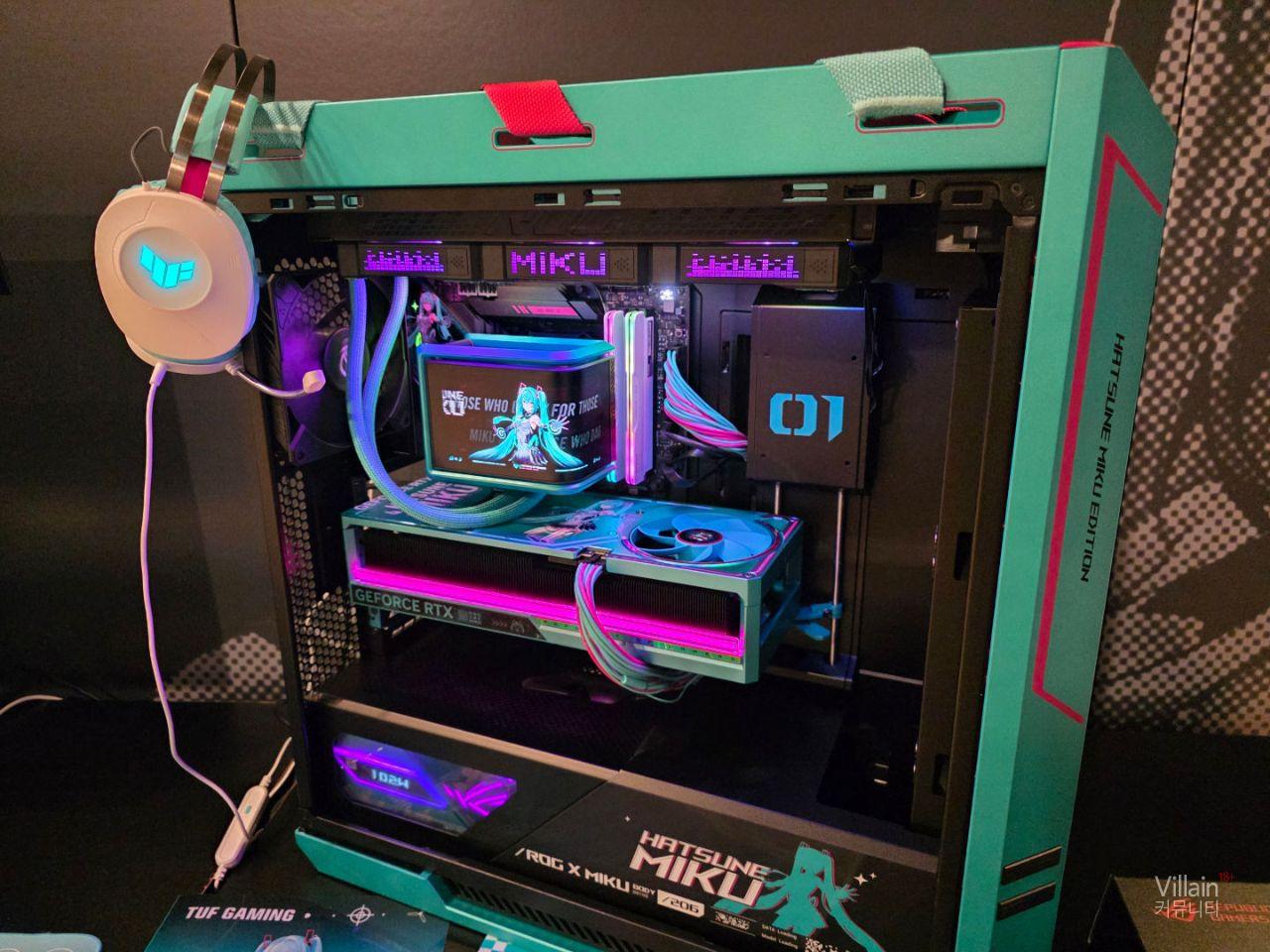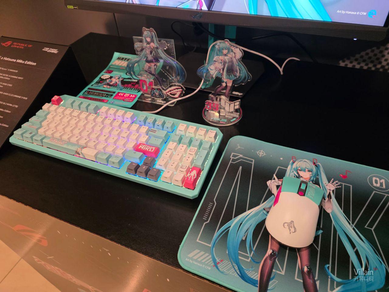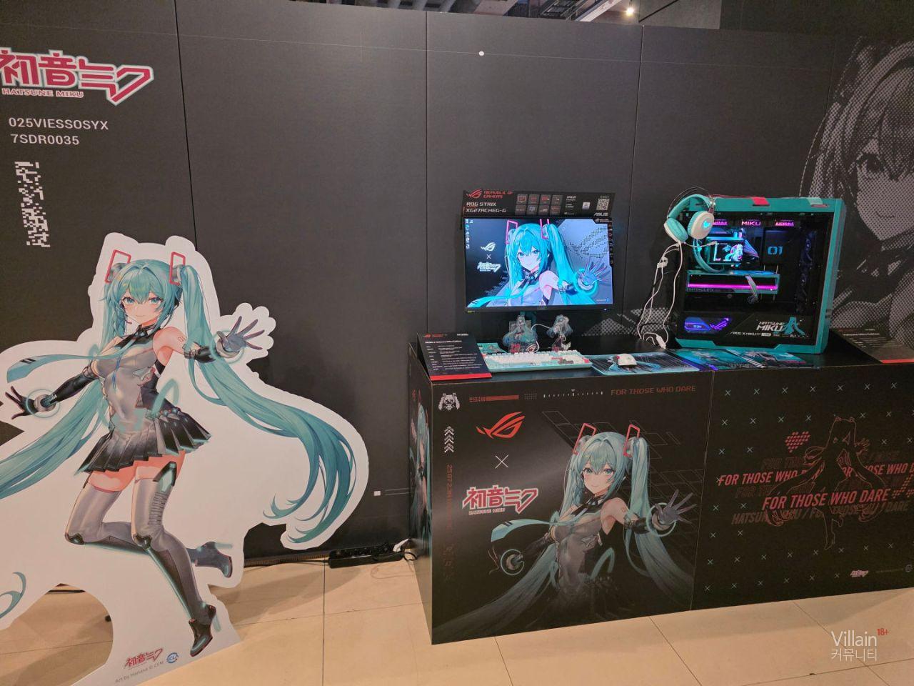 현장에서 사람들의 관심을 많이 받았던 하츠네미쿠 콜라보 제품입니다. 콜라보도 좋았지만 제품자체도 이쁜편입니다. 모니터 , 본체 , 주변기기등 완제품으로 윈도우 설치후 배경화면까지 설정해 판매하고 미쿠로 래핑한 차로 구매자에게 배송까지 하면 재밌을것 같습니다.