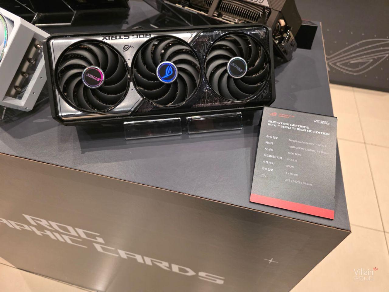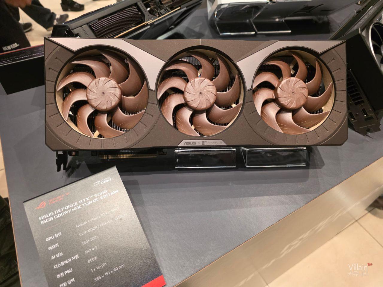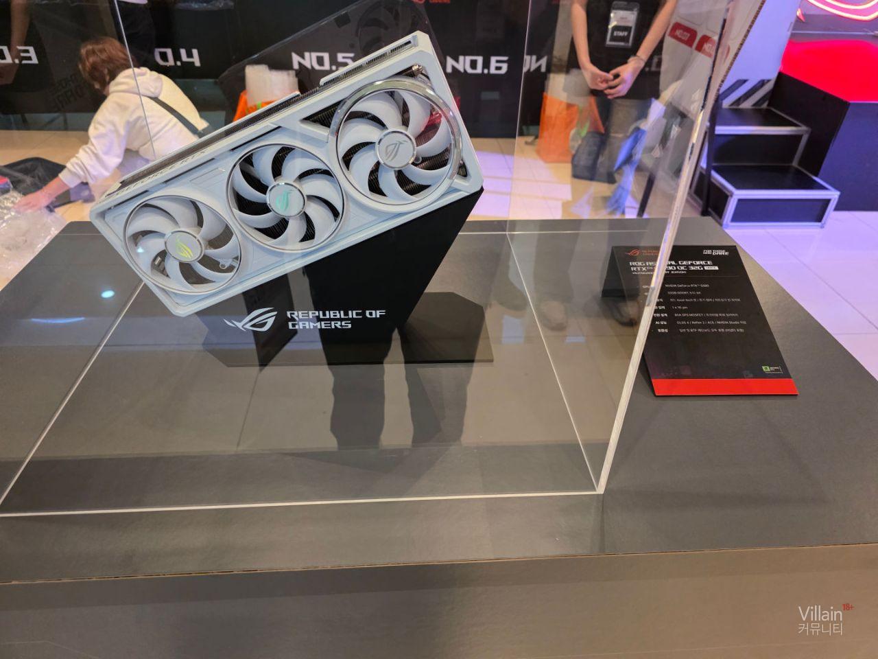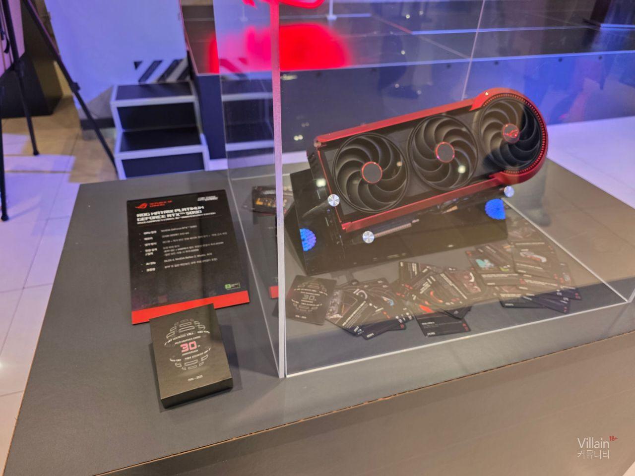 여러가지 그래픽카드가 전시되어 있습니다. 30주년 기념제품인 5090매트릭스 제품과 녹투아팬을 이용한 5080제품이 있었는데 녹투아 제품은 크기가 5090보다 크게 느껴졌습니다.