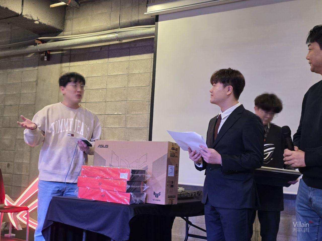 우리는 이분을 꼭 주목해야 됩니다. 스타크래프트 참가자들중 가장 잘했다고 생각한 사람을 흑운장님께서 뽑아주셨는데 이분은 경품이 자신에게 필요가 없다면서 다른분들에게 양보해주셨습니다. 이분덕분에 나중 경품뽑기에서 키보드가 추가되었습니다. 역시 ASUS를 좋아하는 사람은 사람도 좋습니다. ㅎㅎ