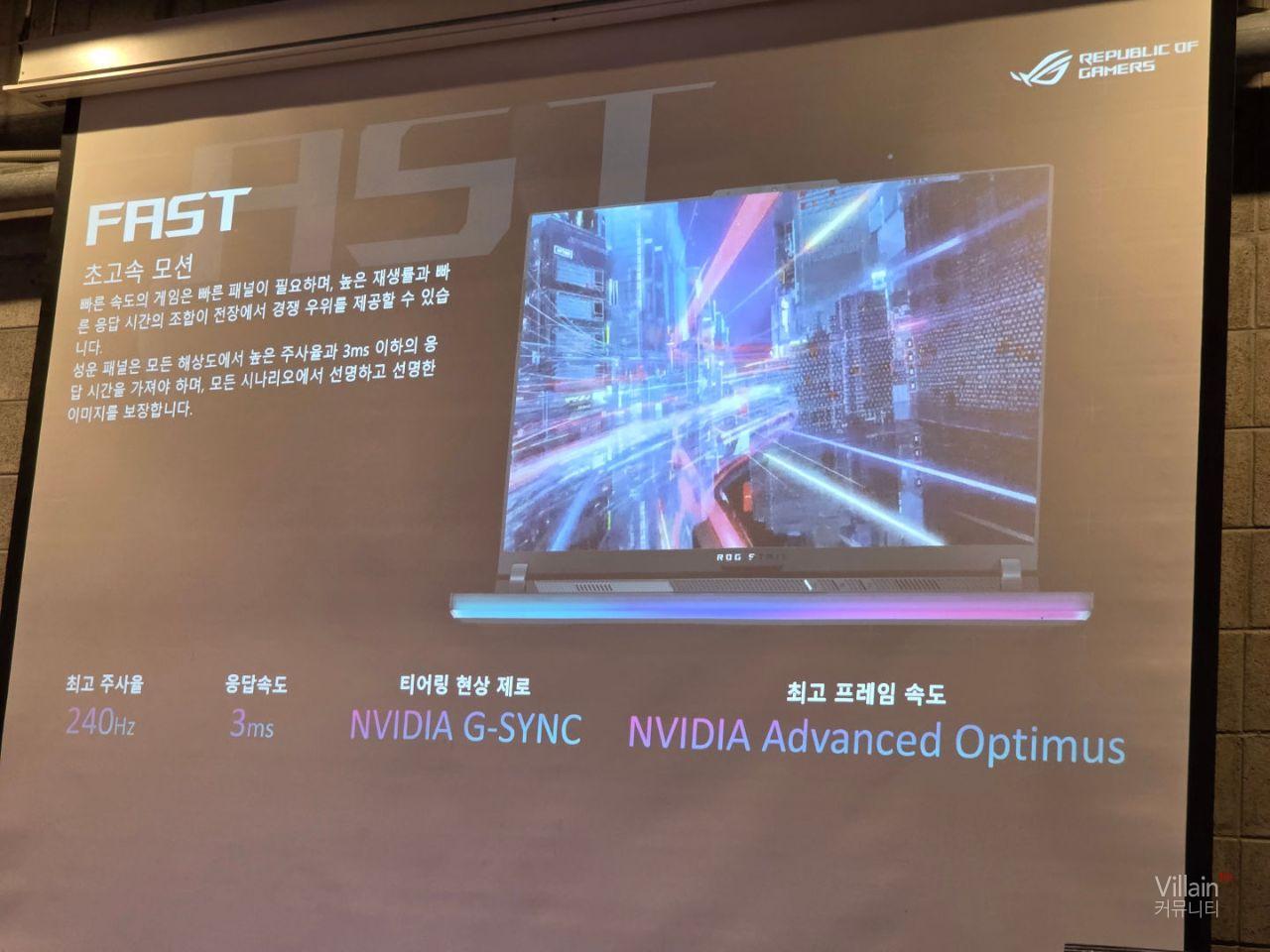 ASUS ROG 노트북의 특징에 대해 설명하고 있습니다.
