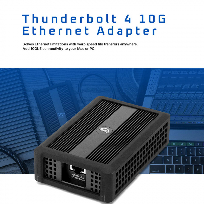 OWC T4-10G Thunder4 10G 네트워크 랜카드는 썬더볼트4(Thunderbolt 4) 단자를 통해 노트북, 데스크톱, 맥 시스템에 최대 10GbE 유선 네트워크를 추가할 수 있는 외장형 어댑터다. 본체의 RJ45 포트를 통해 10Gbps부터 5Gbps, 2.5Gbps, 1Gbps, 100Mbps까지 폭넓은 속도를 지원한다. 고해상도 영상 편집, 대용량 RAW 파일 접근, NAS 또는 서버 백업 등 고대역폭 작업 환경에 적합하다.